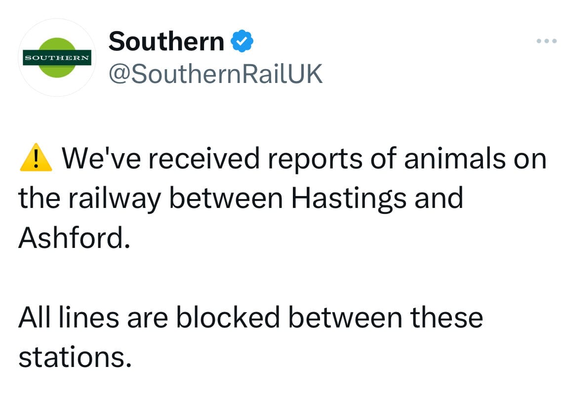 Rail services were disrupted on Monday, March 25 after a train hit a sheep on the approach to Rye. The incident, at around 2pm, happened between Winchelsea and Rye after a flock of sheep strayed onto the line.