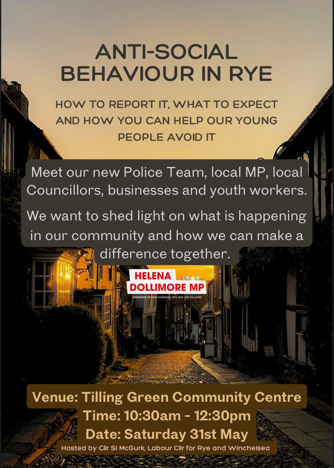 As well as the police, representatives from Tilling Green Residents Association, Rye Youth Zone, Southern Housing, Rother District Council and Rye Chamber of Commerce are expected to attended, along with youth workers.