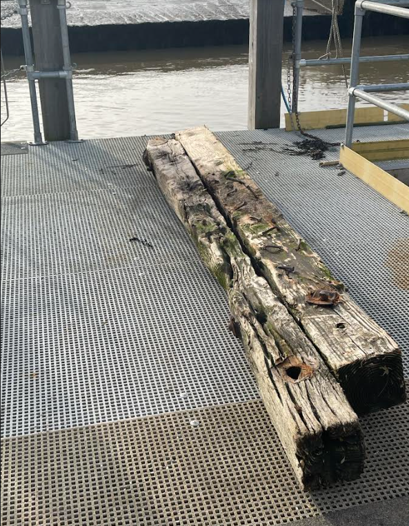 The flood alerts at the weekend were lifted on Monday October 21 after heavy rain and the high autumn tides. Our main picture shows the flooding at Rye Harbour on Saturday and these two pieces of wood were pulled from the Rother on Friday afternoon by Rye Harbour Master James Bateman and his team.