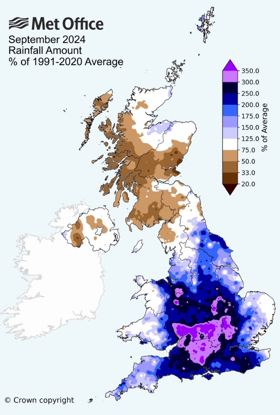 Confirmation from the Met Office just how wet September has been. Rye had twice as much rain last month as the average rainfall for September. Other parts of Southern England have had three times the average.