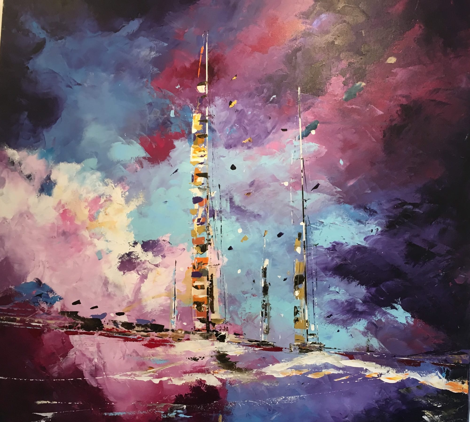 The first week's exhibition, which began on October 9 and ends on Monday October 15, features paintings by four different artists, Katherine Rowe, Henrietta Stuart, Gerard Mortier and Geca who feature in the Oil & Water online catalogue. They are all well known and selected for the relevance of these particular works to the setting. Each has a very different style and this gives choice and variety. It all makes for a rewarding visit.
