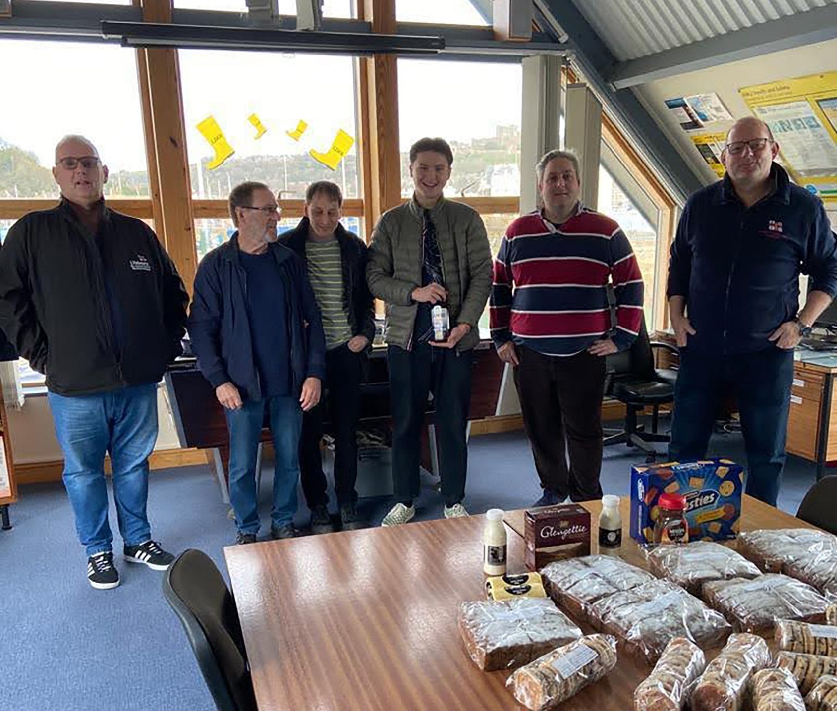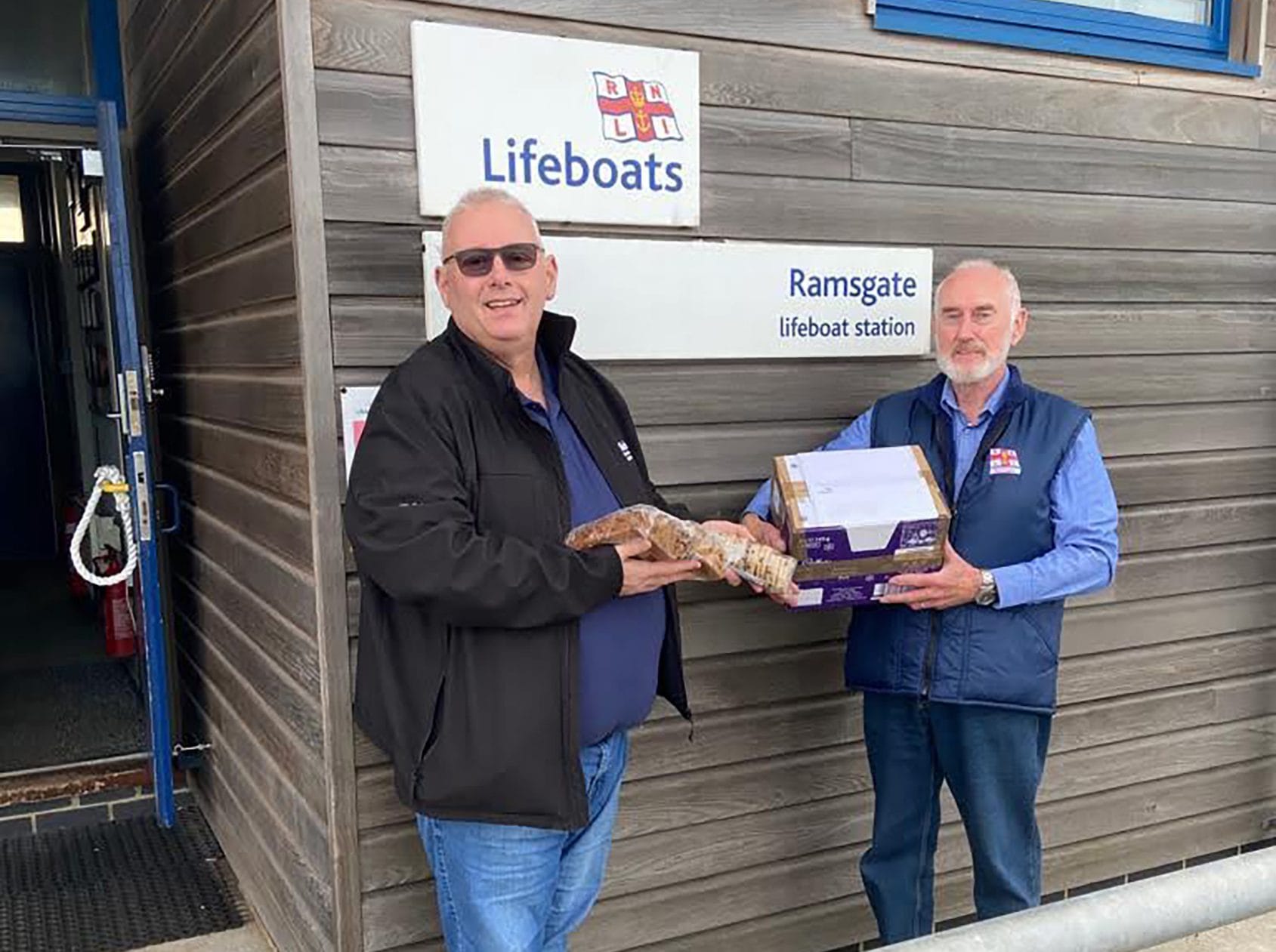A few weeks ago, at RNLI Port Talbot, a discussion took place after watching an episode of Saving Lives at Sea. Clive Morris, lifeboat operations manager (LOM) and Ceri Jeffreys, deputy launching authority, wanted very much to send a gesture of friendship and support to the crews of the lifeboat stations along the southeast coast. Their first thoughts were that it should definitely be something Welsh: Welsh cakes and bara brith came to mind, and it went on from there. Ceri’s best friend, Lee Pugh, is head of baking at Cardiff Metropolitan University and he asked him if they could bake some cakes for the boxes that they were preparing to send. This turned out to be eight hundred cakes, “and when you see that number in one place it is massive!” said Ceri. Lee even put off baking his own wedding cake to bake all those for the RNLI volunteers first. Dave Owens, from Cardiff Met, supported the cake baking too. A big thank you too goes to all the Porthcawl bakers who were involved.