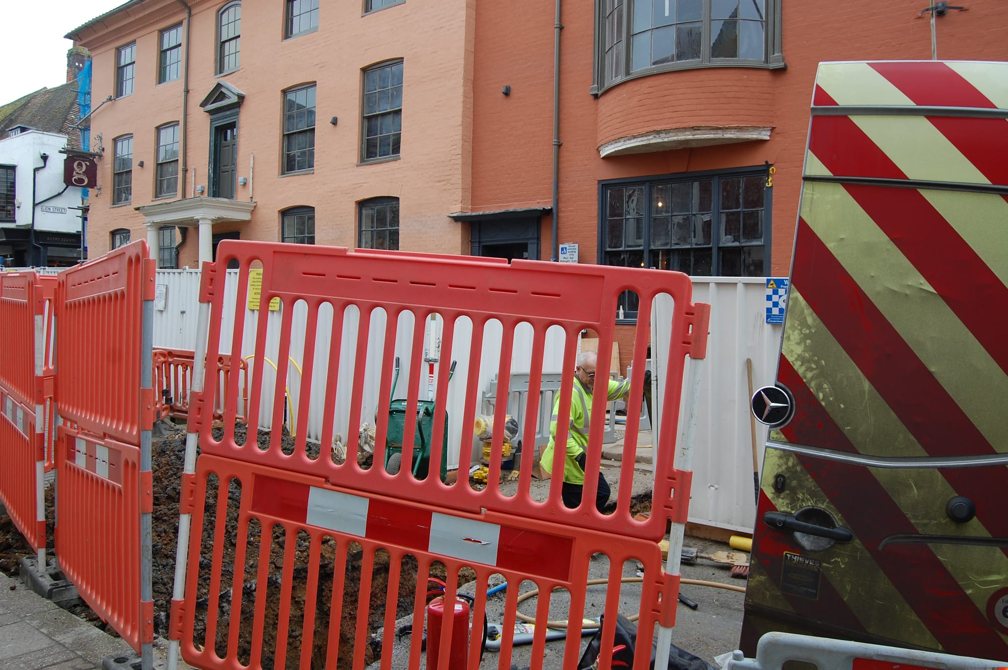 The Southern Gas Network team finally got busy this week, digging the trench to reveal and renew the gas supply line that currently serves the George Hotel.