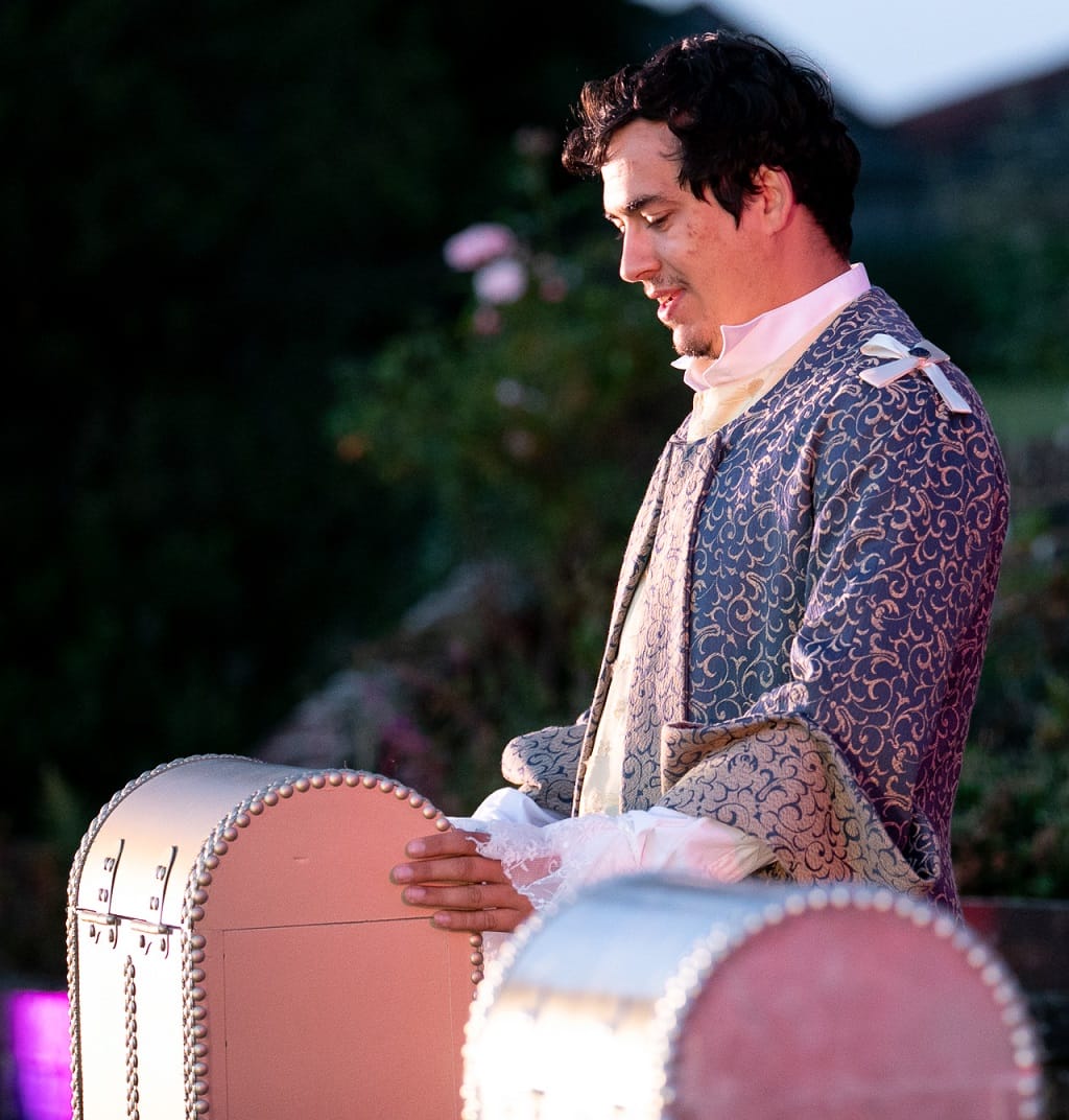 Stephen James John, the Artistic Director, considers this his best work and the reviews have been amazing. Every actor in this show has been professionally trained in Shakespeare performance and, as always, Stephen has directed in a way that makes it very easy to understand for those who are newcomers to Shakespeare or think they don’t like it because of past bad stuffy experiences. Stephen himself plays two significant comic roles and and three small straight roles. Bowler Crab now have a lighting technician on board who regularly works in the West End and during the evening performances the backdrop and lighting of the 16th-century farm house is amazing.
