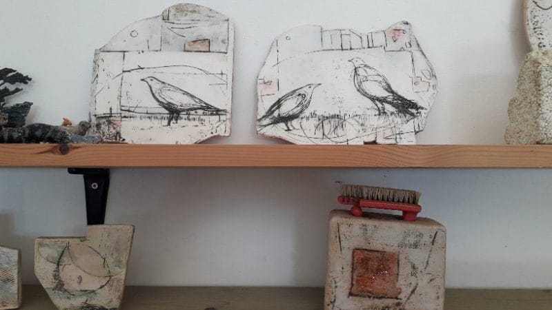 Sarah Palmer, artist and maker of pottery, was showing her interesting pottery. She will be with the Rye Society of Artists at their summer exhibition in August.