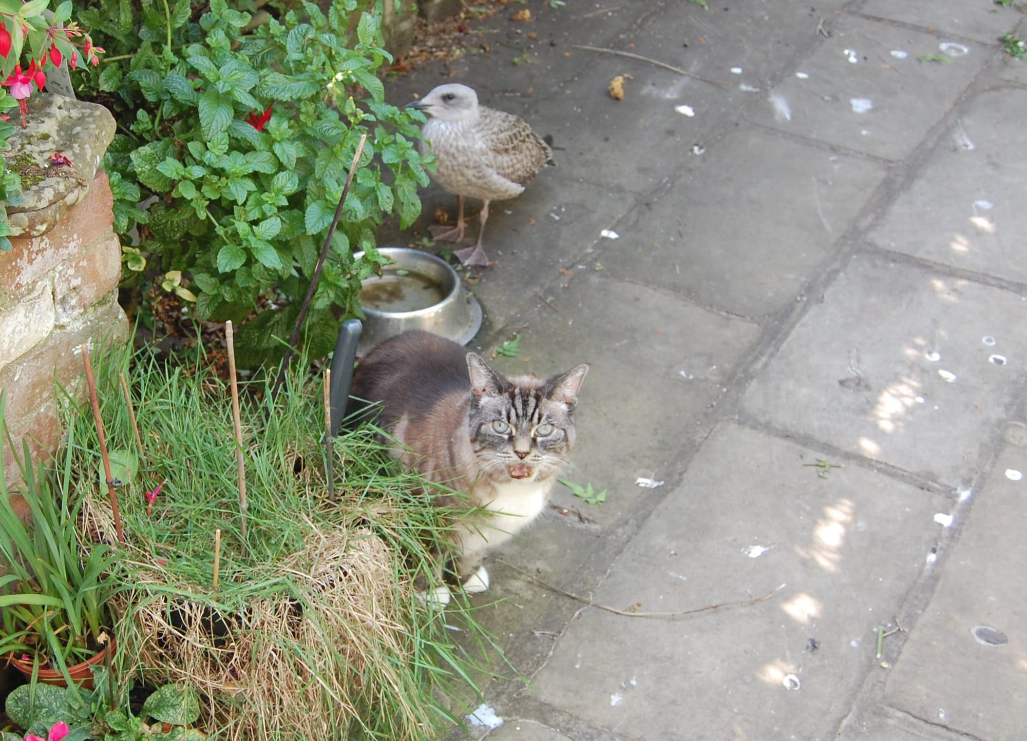 We begin to fear that he is a friend for life, with his life-span of 30 years perhaps now longer than ours. We quite expect to have a fully mature gull dropping by each day. Trouble is, we’ve grown quite fond of the little critter!
