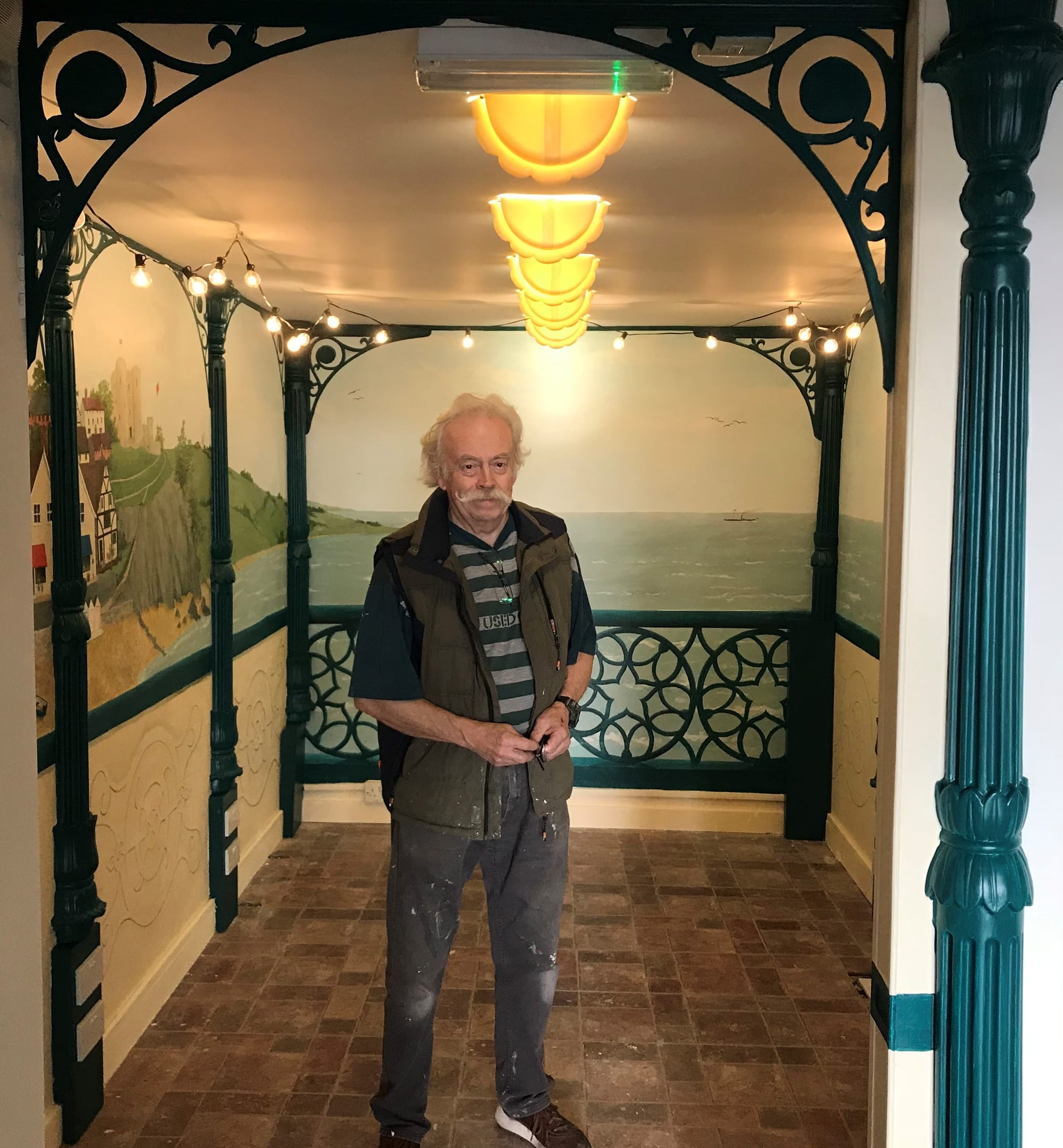 As I spoke to the two very friendly volunteers, Viv and Trevor, I could hear children’s shrieks of laughter as they played on the old penny arcade machines in a new display area, built and hand painted with a superb mural of an old Victorian pier by professional and multi talented muralist, Richard Langley. Richard was commissioned to paint the mural and all costs involved were donated by a very generous and local Rye resident. Brewers paints kindly donated paints and varnishes and Parkers Building Supplies also made a donation.