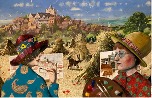 The illustration displayed on the banner, Janet Haken’s Painting the Town… was the result of a design competition run by the club earlier in the year whereby members were invited to submit, anonymously, potential images for the club’s promotional material to reflect either Rye or painting. Members then voted for their choice (but could not vote for their own!). Janet’s painting, with its striking colour contrasts and strong lines, won by a nose, possibly because it reflected both themes. Congratulations, Janet!