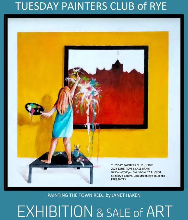 “Record entries of very high-quality paintings!” summarises this year’s ever popular Tuesday Painters Club of Rye exhibition which runs from August 10-17 10.30am-5.00pm at St Mary’s Centre, Lion Street, Rye.