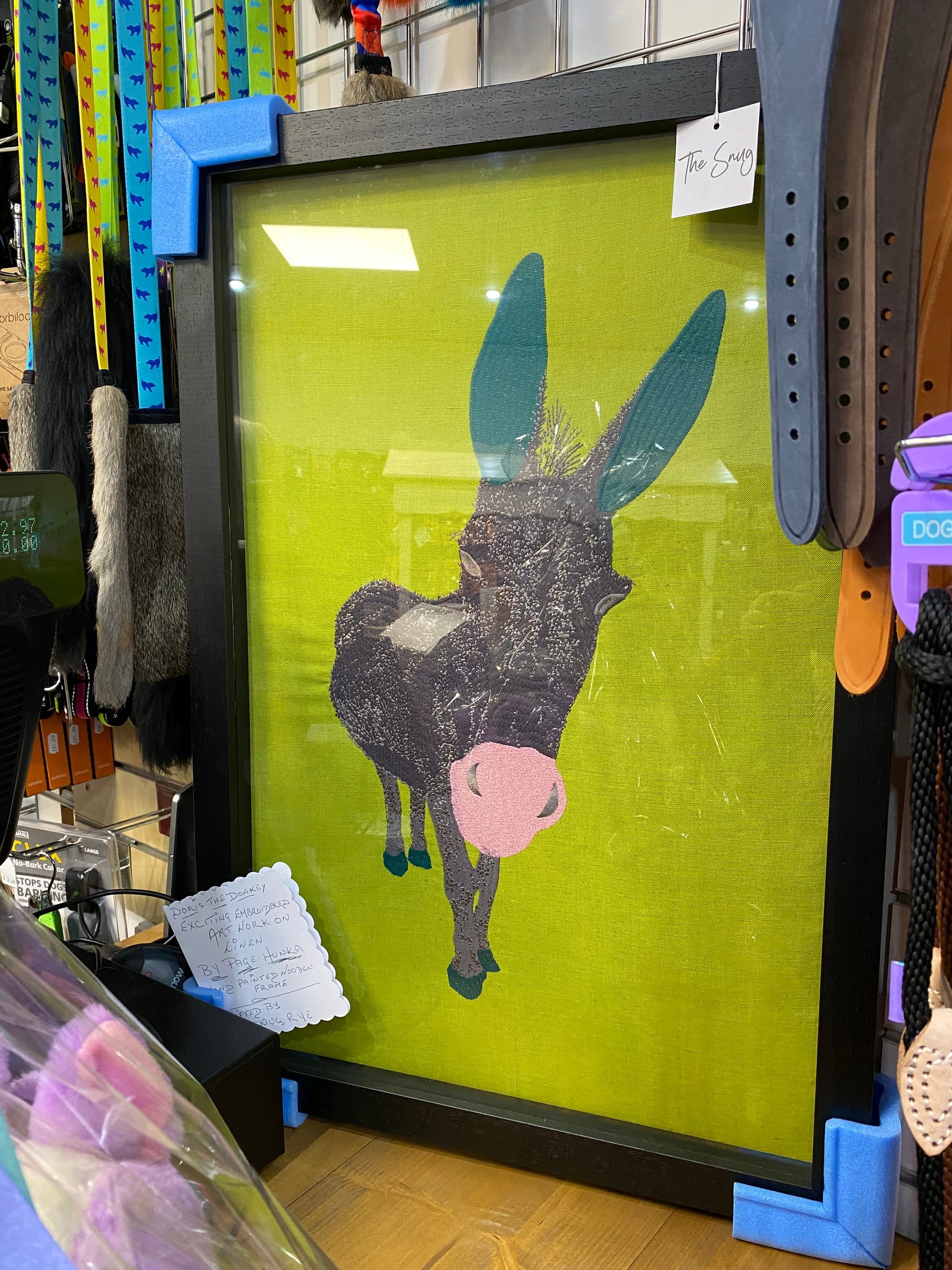 Paws'n'claws are running a fantastic raffle to support the work of Undercliff Pony Rescue. For small cost you can contribute to the care of the ponies, Tommy the Mule and Donny the Donkey. One of the prizes is a fabulous embroidered artwork on linen collage of Donny by Page Hunka.