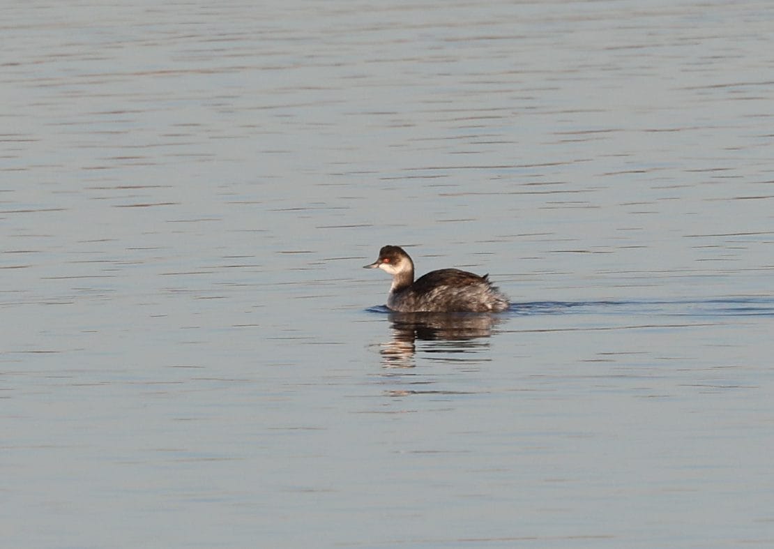 On a few days hundreds of gannets came close inshore at high tide and there was a spectacular feeding frenzy near the river mouth. Inland, at the ditches and pits there were also several fisher birds. At the Halpin hide the long-staying black-necked grebe was in its monochrome winter plumage, but still with its ruby-red eye.