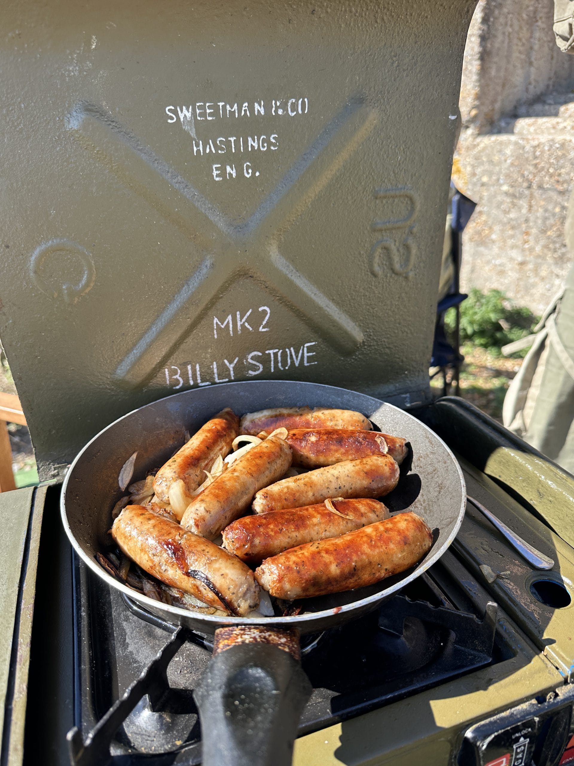 A convoy of four Second World War military jeeps processed along the reserve road and parked up alongside the pillbox. The owners are all members of the Invicta Military Vehicle Preservation Society and were proudly dressed in period uniforms. They even set up a barbeque, made from a repurposed jerry-can, to cook sausages for lunch. One of the owners told me that his wife had seen an American jeep travelling down the road near to where they lived and she said she loved it. They bought one and had a 1940s wedding with the jeep centre stage.