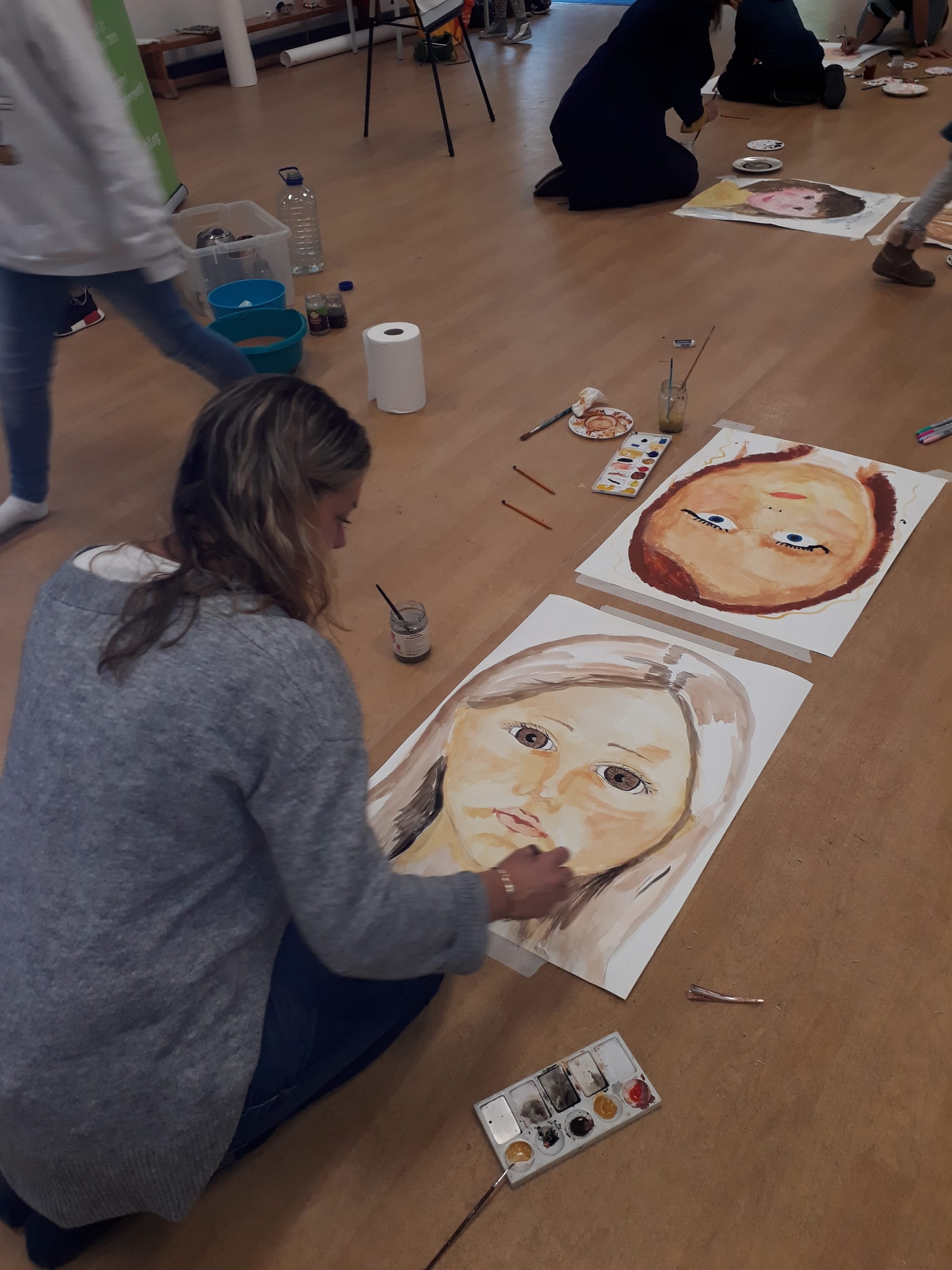 They learned how to draw and then use watercolours to create each other’s portraits. The workshop was led by local artist Stephanie Fawbert. She taught everyone the essentials of how to paint a successful portrait and the importance of looking properly.