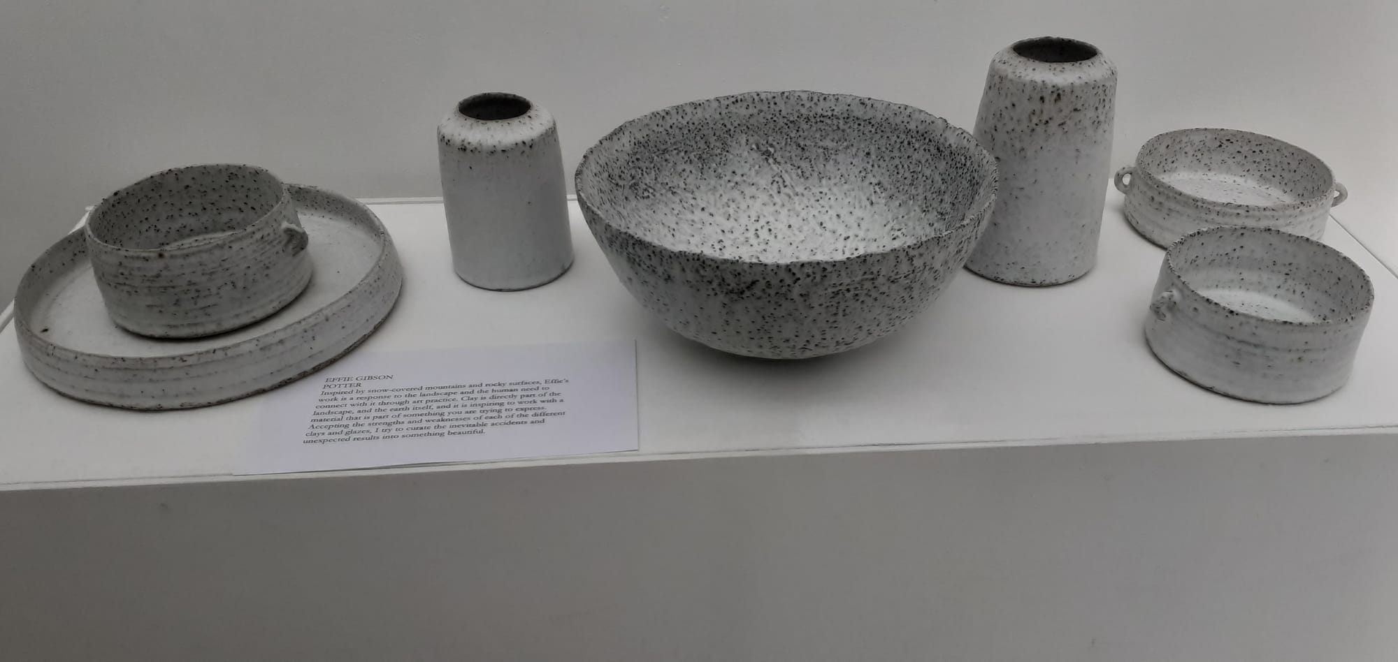 People were complimentary and appreciated Sally's paintings as well as the pottery by Effie Gibson (below) and sculptures from other artists, all of which brought about several sales - a busy but enjoyable first day back.