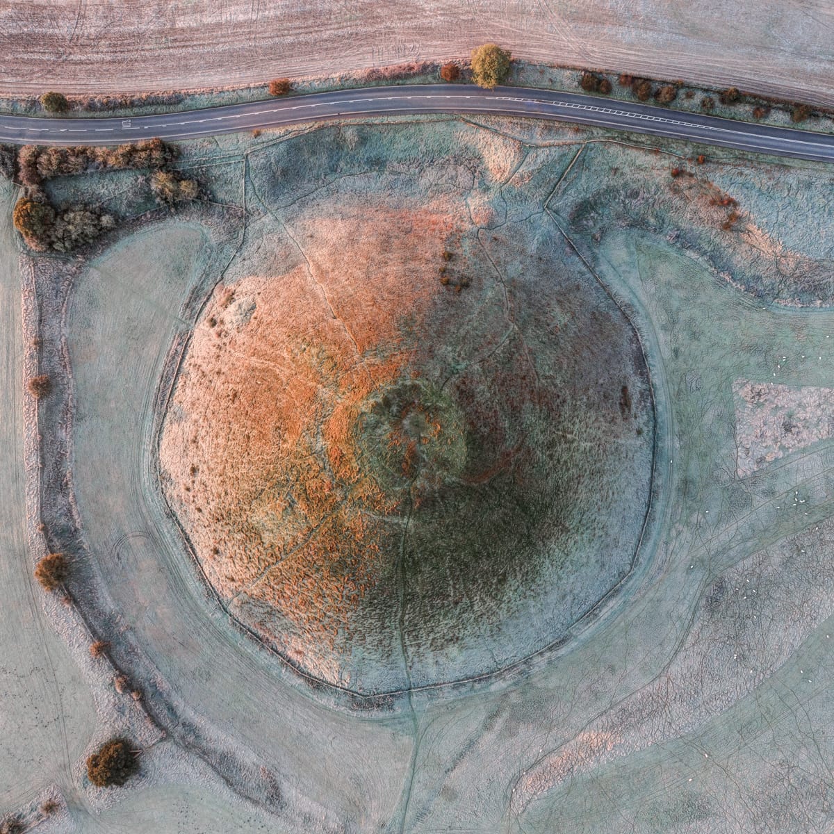 He is a Welsh photographer and writer based on the border of Somerset and Wiltshire, and creates large-scale prints of prehistoric sites and their landscapes, shot from above, which he describes as: “Painterly in tone and tending towards abstraction, my work explores notions of liminality, the sublime and sense of place.”