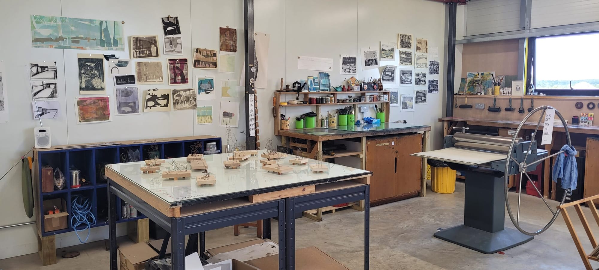 I was spending more and more time in Rye Harbour (a real antidote to the chaos of London) and my work had become very influenced by the local landscape (both the coast and the ancient hinterland behind). My dream was to find a studio down here - preferably by the sea. I watched the new warehouses go up at Rastrum and made enquires... It took a couple of years but finally I secured one of the units. The space is enormous - it was a daunting prospect and when I first moved in, I felt pretty overwhelmed! But surprisingly, it hasn’t taken long to get used to it. Compared to my tiny cramped studio in London there is room for everything ; I can now breath, move and even dance around my printing press - the space is liberating!
