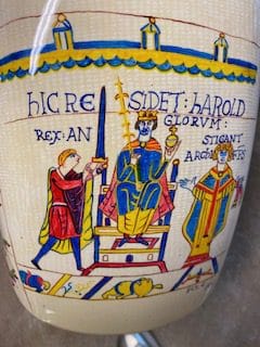 My bike commemorates the Battle of Hastings in 1066. There is a frieze of images of galloping horsemen on the front and rear mudguards that go up one side of the bike and down the other. These are copied from the Bayeux Tapestry, made in the 11th century, which depicts the events of the conquest of England by the Norman French in 1066.