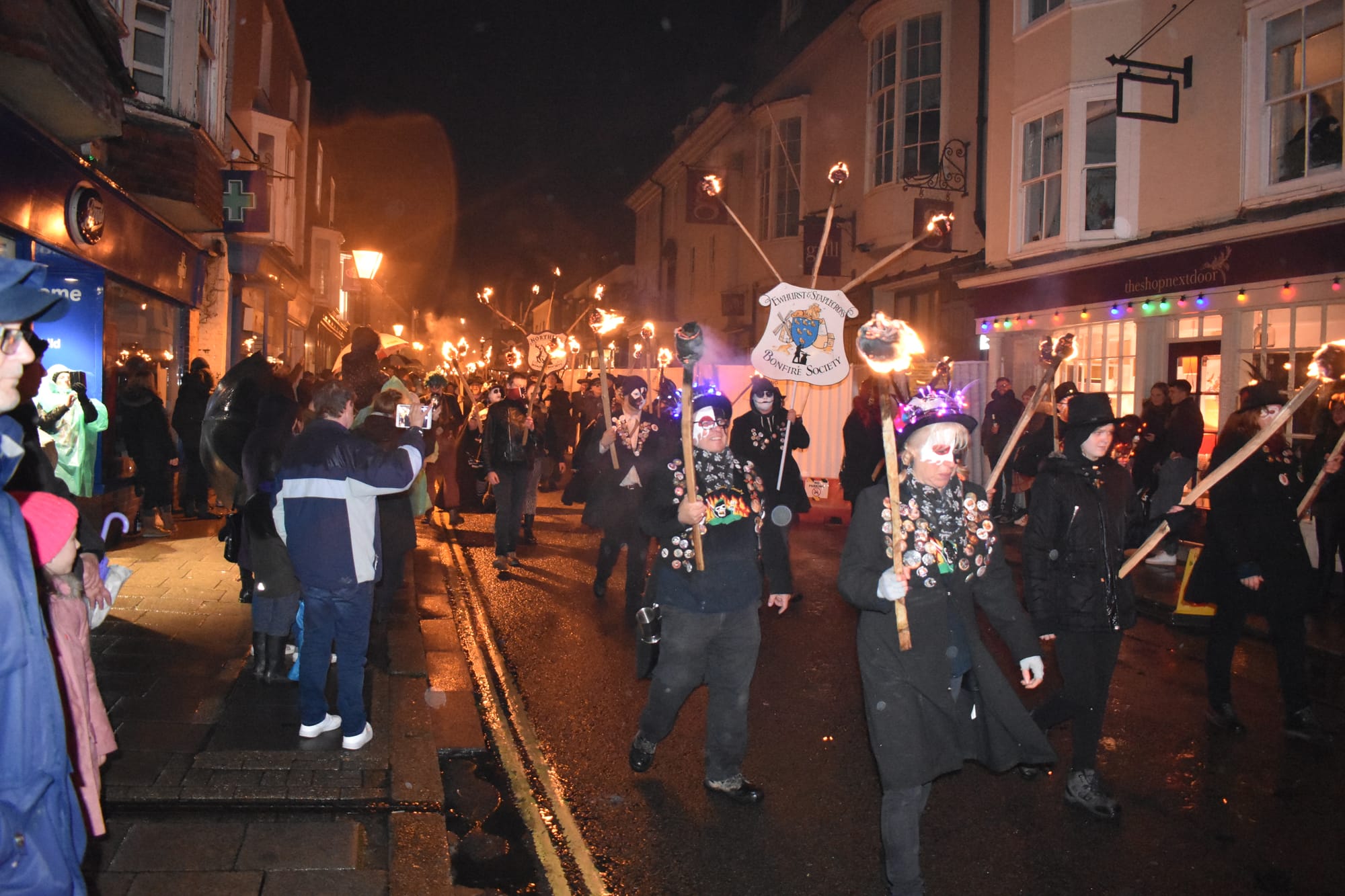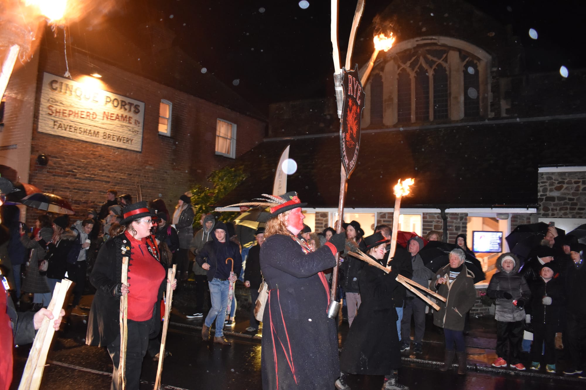 Despite the weather doing its best to rain on Rye's parade, the bonfire evening and parade of the East Sussex Bonfire Societies, led by Rye Bonfire society, filled the streets on Saturday evening with the usual noise, drumming, costumes, painted faces, flaming torches and controlled mayhem.