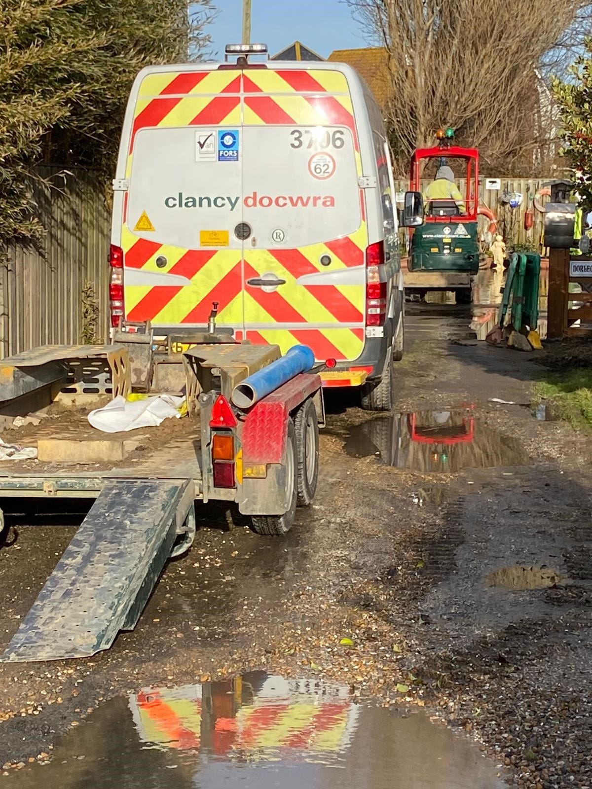 Southern Water were alerted and a team dispatched. Upon arrival, the assessment concluded a serious leak had developed in the mains water pipe, deep below the surface. Southern Water turned off the main supply at around 11:45am rendering the whole of the Whitesands development and nearby Scott’s Acre, as well as other parts of Camber, without any water supply.