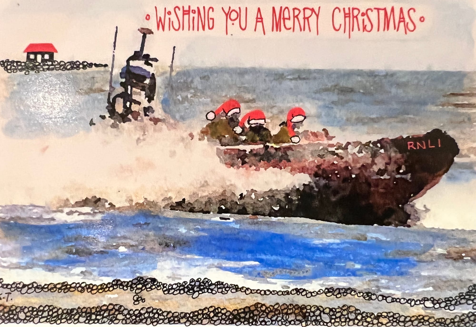 RNLI Rye Harbour has produced a Christmas card for sale this year and all proceeds will go to the RNLI. All the crew at Rye Harbour are volunteers who are on duty in all weathers, 24/7, 365 days of the year and raising funds is vital to help the station carry out its duties.