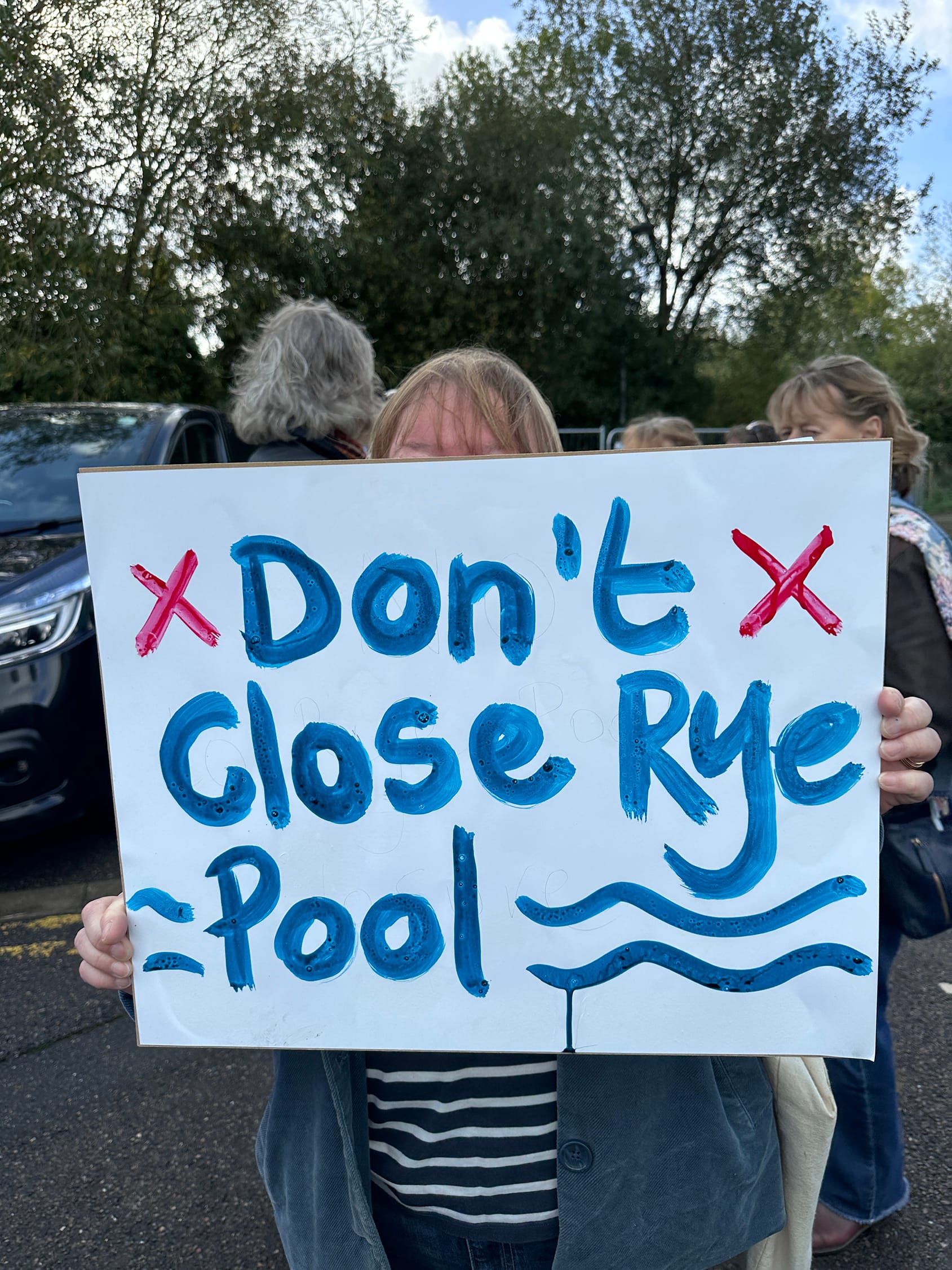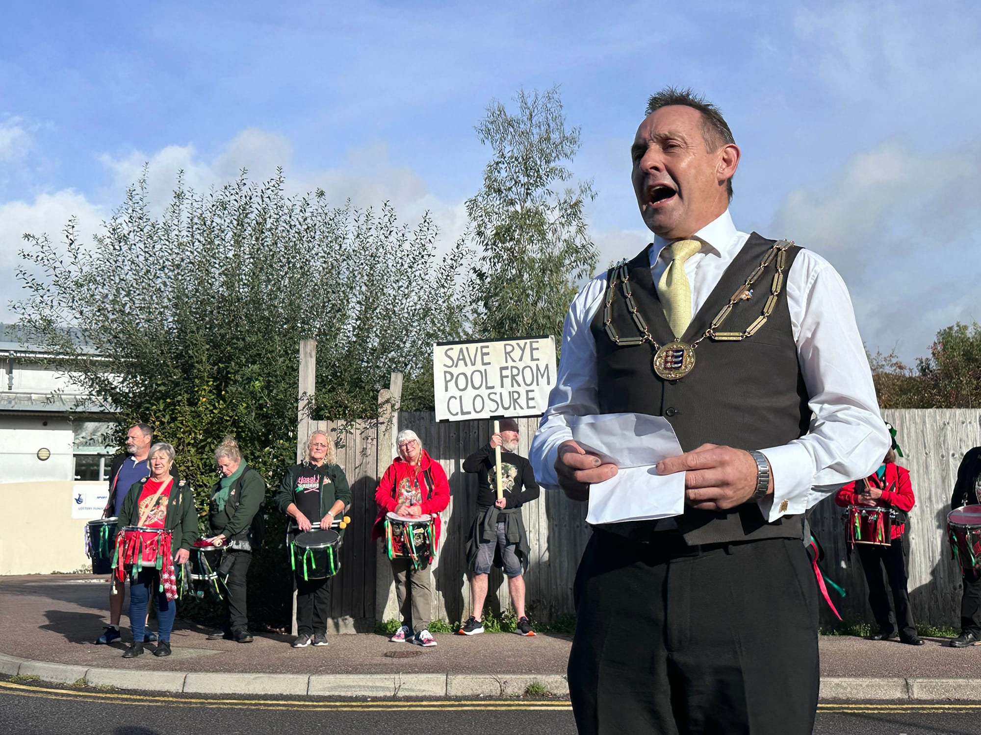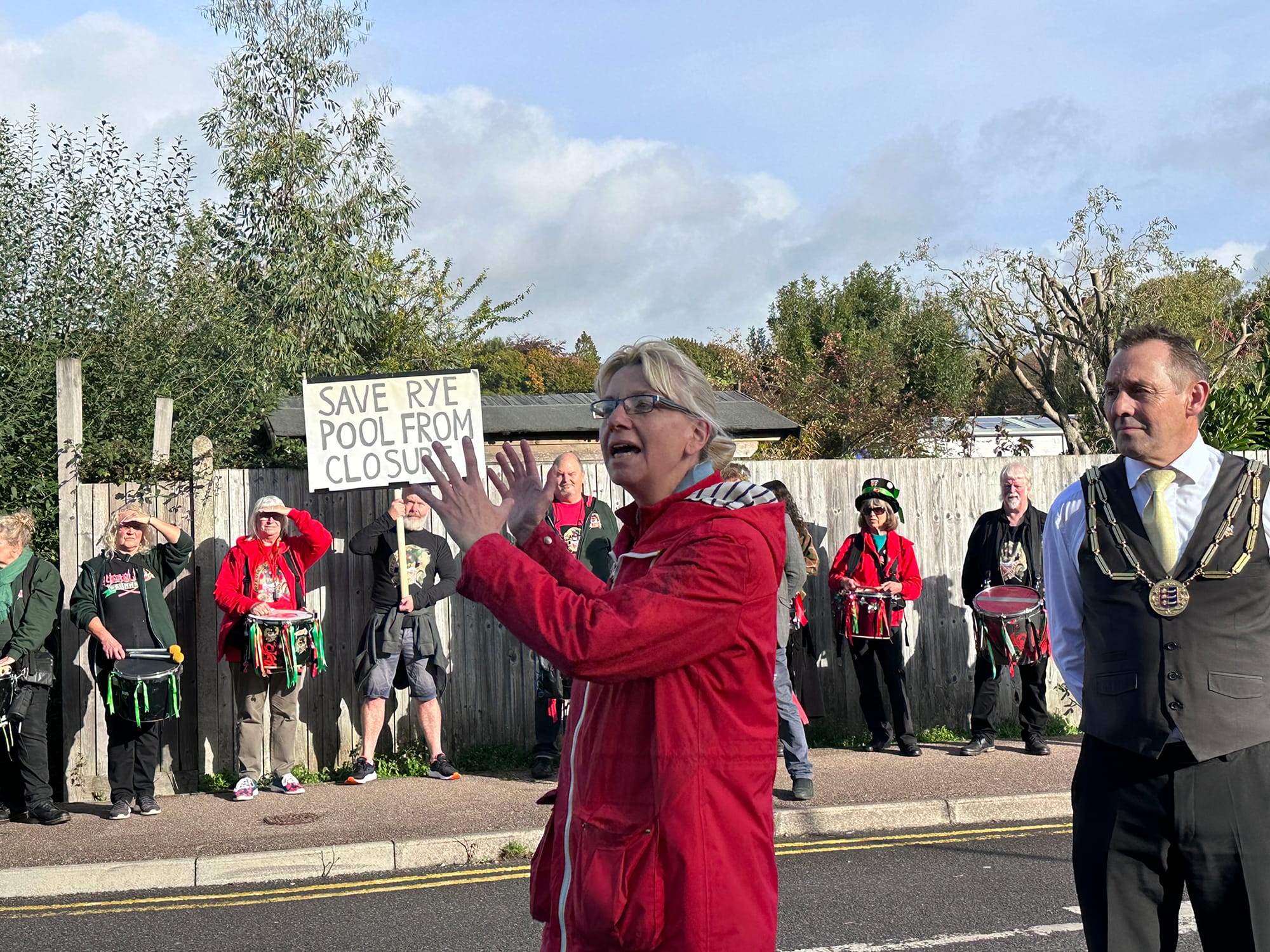 This public meeting in the leisure centre car park last Saturday morning had been hastily convened by Mayor Rivett and Cllr Rebekah Gilbert to launch a campaign against the closure. Amidst the frantic beating of Ryebellion war drums our mayor raged against the decision by Ivan Horsfall Turner, chief executive of Freedom Leisure, to close the pool within weeks and without any prior consultation with either the public or RDC.
