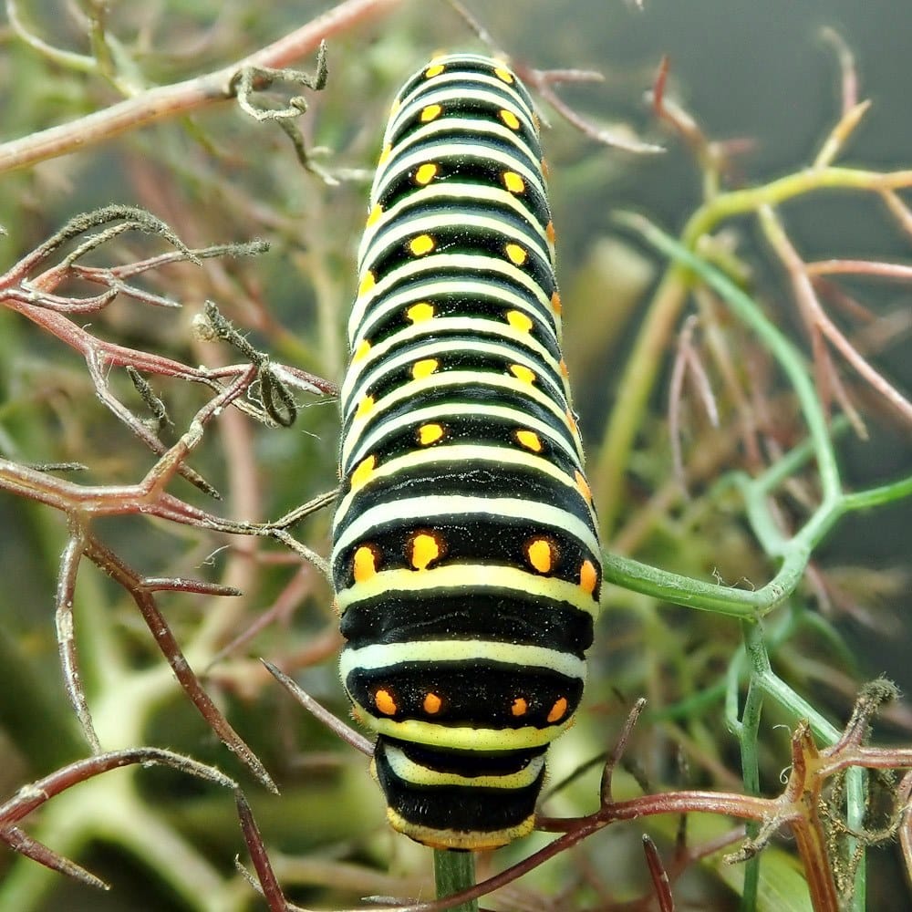 22nd August - in just two weeks the Swallowtails have gone from 1mm eggs to 35mm long multi-coloured fennel eating machines - nature is amazing if you take the time to observe it closely.
