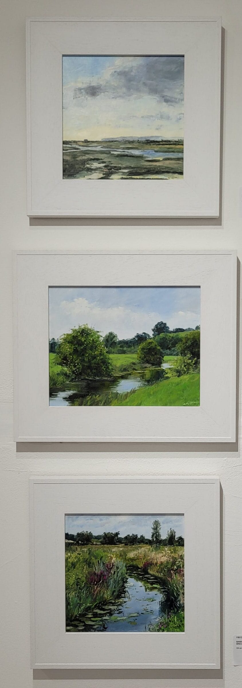 Artists have long responded to the landscape and atmosphere of the marsh, coastline and views of Rye rising above the flat. Clare Mitchell’s en plein air paintings capture the light reflected off the Brede and Tillingham rivers, and the lush greens of the nature reserve and other corners of the marsh. In contrast, the abstract broad sweeps of Sally Cole, Jane Beecham and Karen Birchwood are expressive and bold representations, or suggestions, of changing seas, skies and weather.