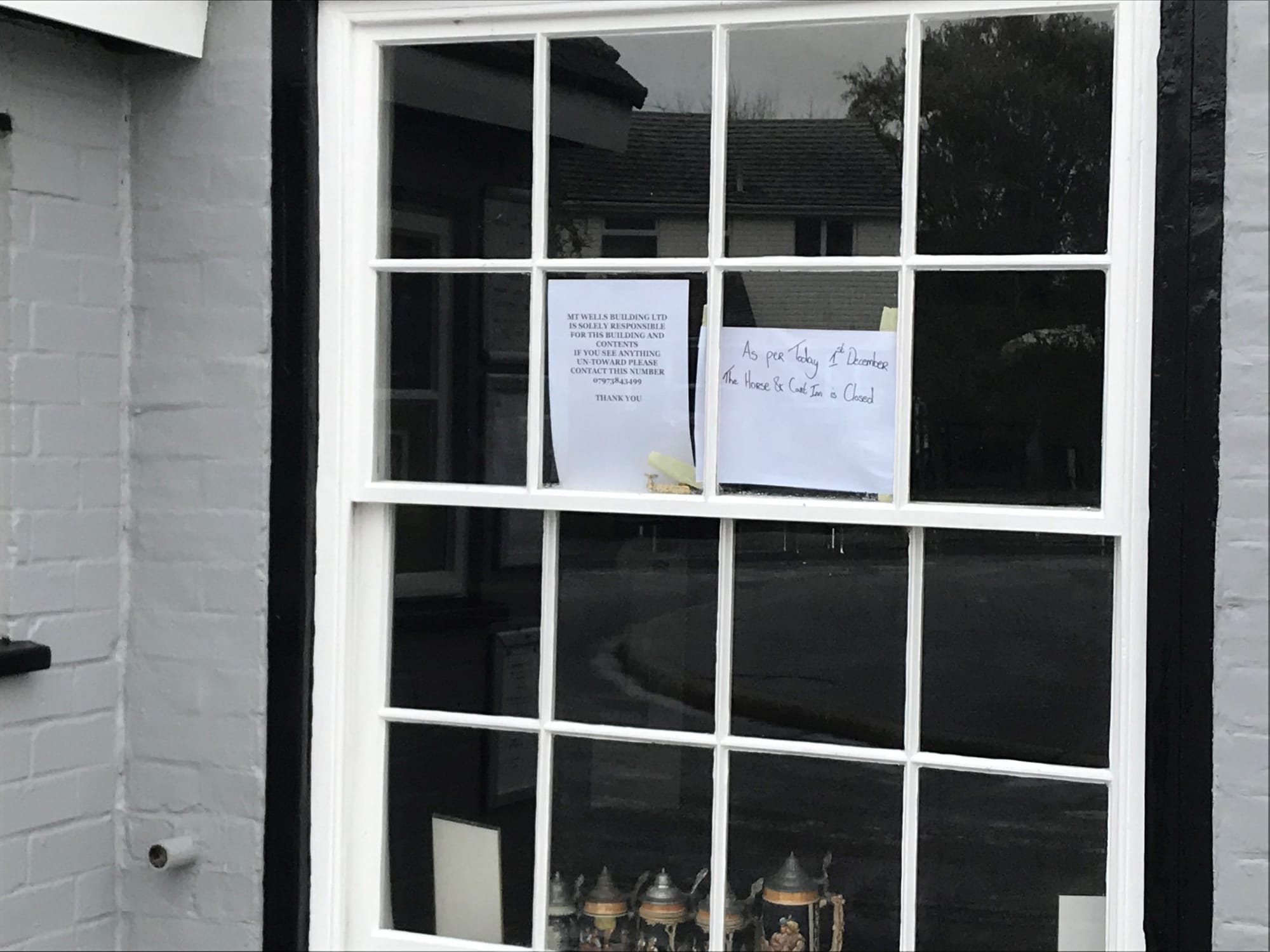 The Horse and Cart now looks forlorn and last Sunday lunchtime, I witnessed a rare sight: an empty carpark which would usually be full if not overflowing. It's very sad to see this business closed. But what about the staff? Hopefully they will be snapped up by competitors to see them through Christmas at least. And as to the future of the pub, who knows?
