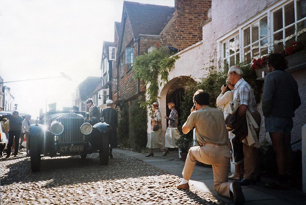 As the cameras first rolled you could have heard a pin drop. We had to be careful not to stand too close to the action, as we might be seen reflected in the windows of the houses opposite. I remember one fellow in the watching crowd accidentally jangled some change in his trouser pocket and the director yelled "Cut!". The man looked a little embarrassed. After that, I hardly dared to breathe! Neither did he! I remained transfixed and rooted to the hot cobblestones – fascinated as the scene unfolded and magically rolled back 50 years to the elegance of 1930s Rye.