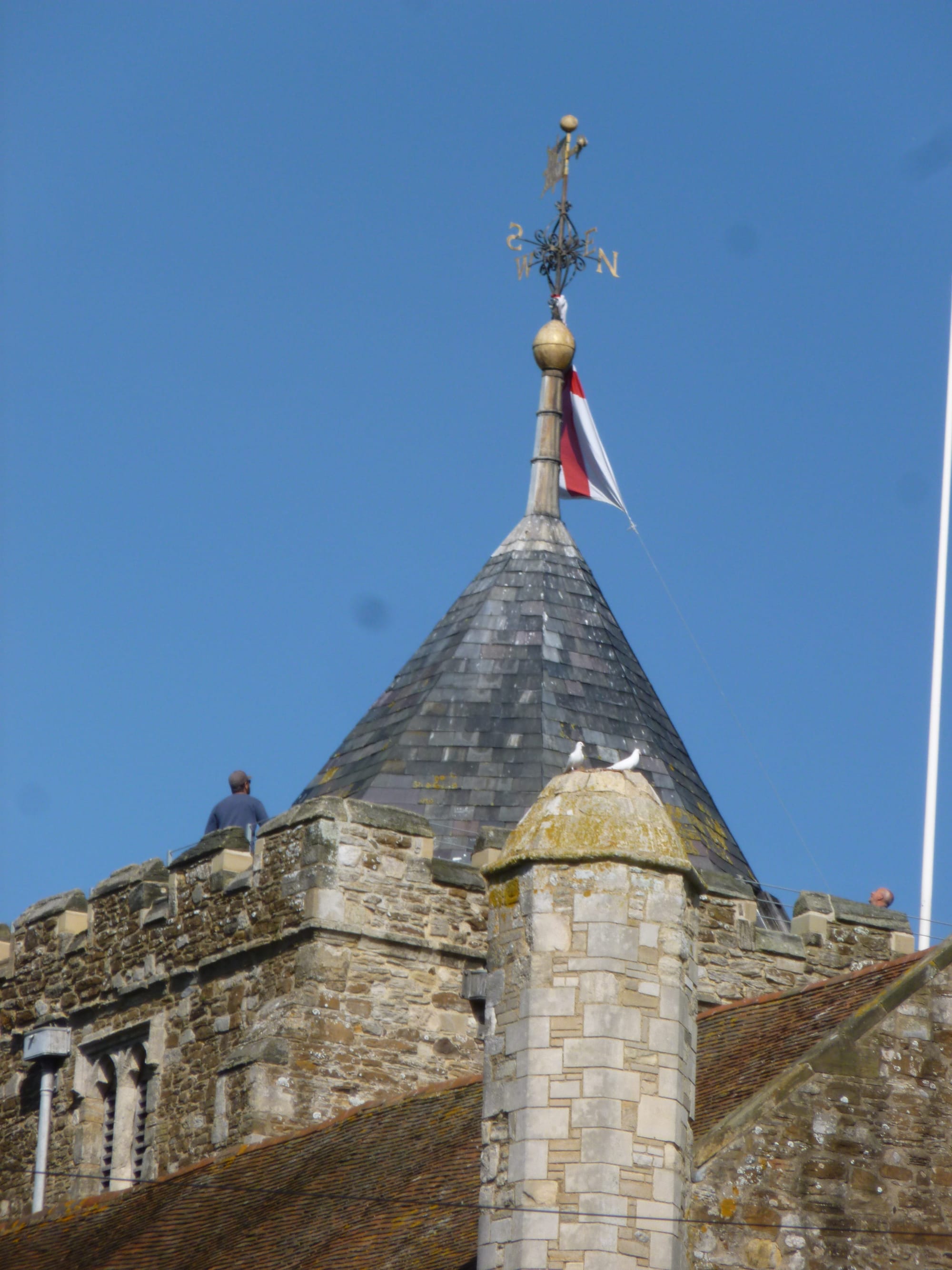 Whilst up on the parapet, Geoff Goldfinch and his men replaced some of the slates loosened in the high winds, as previously reported in Rye News. The lowering of the flag-pole to enable the replacement of the halyards will be undertaken shortly.