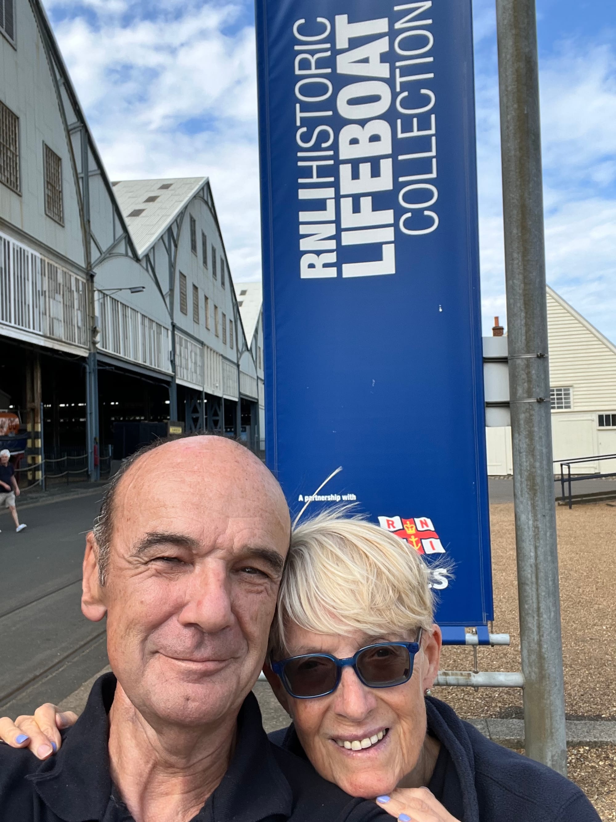 Our meeting is to mark a big change in Kt’s and Martin’s lives. They’ve just retired from seven years volunteering for RNLI Rye Harbour, with Kt as press officer and Martin as the local chairman and press officer.