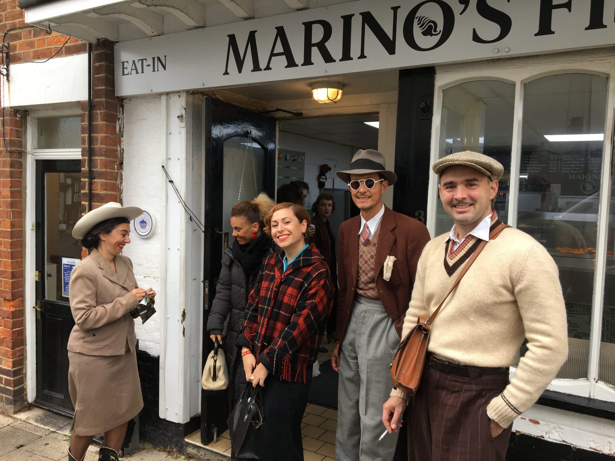Over the weekend visitors to the Rhythm Riot celebrations have been spotted in 1950s dress taking in the sights of Rye and the ladies at the Sue Ryder charity shop on the High Street joined in the theme by dressing their window with vintage clothing of the period (see this weeks article Getting retro at Ryder).