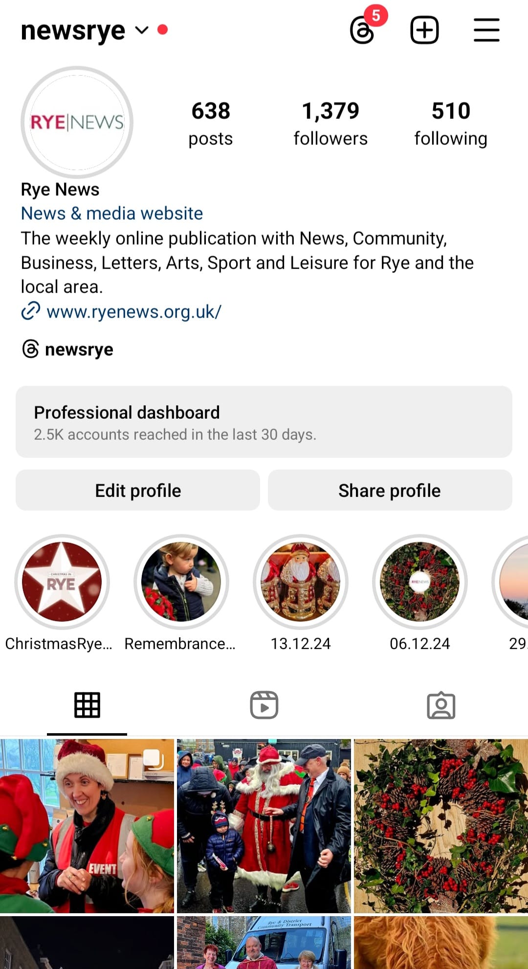 A growing part of our online profile is our social media presence. The Instagram page @newsrye was started by former editor Nick Forman. I took it over a couple of years ago, followed by Facebook and Threads. Our current editor James Stewart deals with X. While Facebook is mainly curated by Kt Bruce and Carolyn Gould, my favourite medium for expression and our most up to date information is on Instagram.