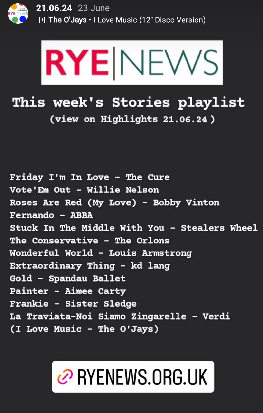 The main grid is a patchwork of the year, but the Stories, tell the detail. To remember 2024, look no further than the highlight icons, where the Stories are collected every week. In glorious technicolour, you are able to scroll through some of the year's news, events and articles. Every Sunday, we put up a playlist of the tunes that we've used.