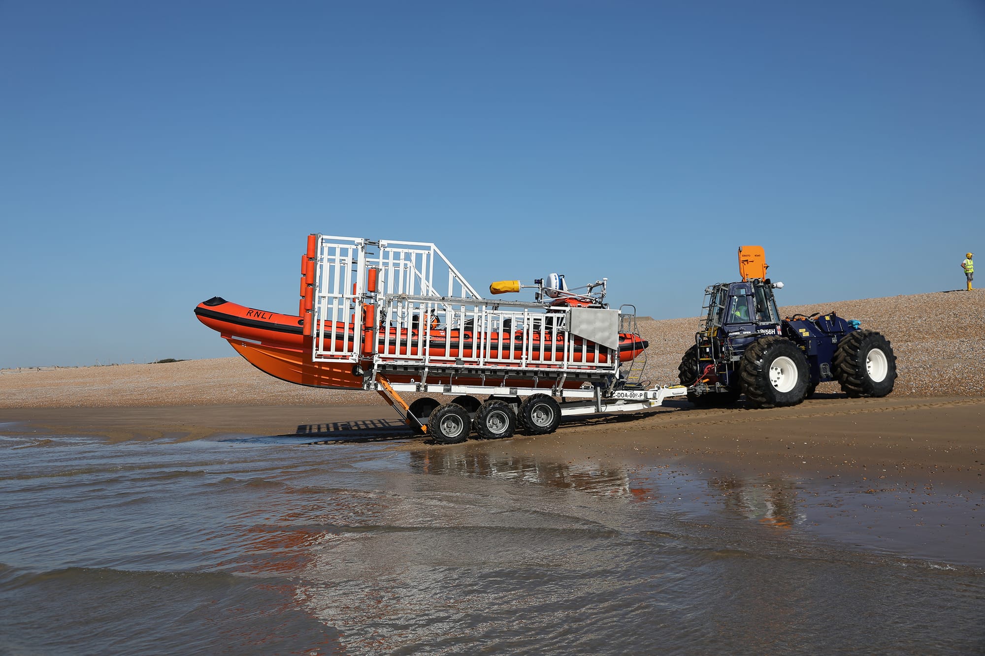 As it was low tide, the boat had to make a low water launch which involves taking the boat down to the mouth of the Rother on its carriage and launching from the beach. This requires a team of shore crew to assist, an experienced tractor driver to cope with the steep bank of shingle and of course four crew members to man the boat. Many crew members were preparing for an evening with families, a meal out and time with loved ones, but once their pagers went off, they made their way to the station and the shout was underway.