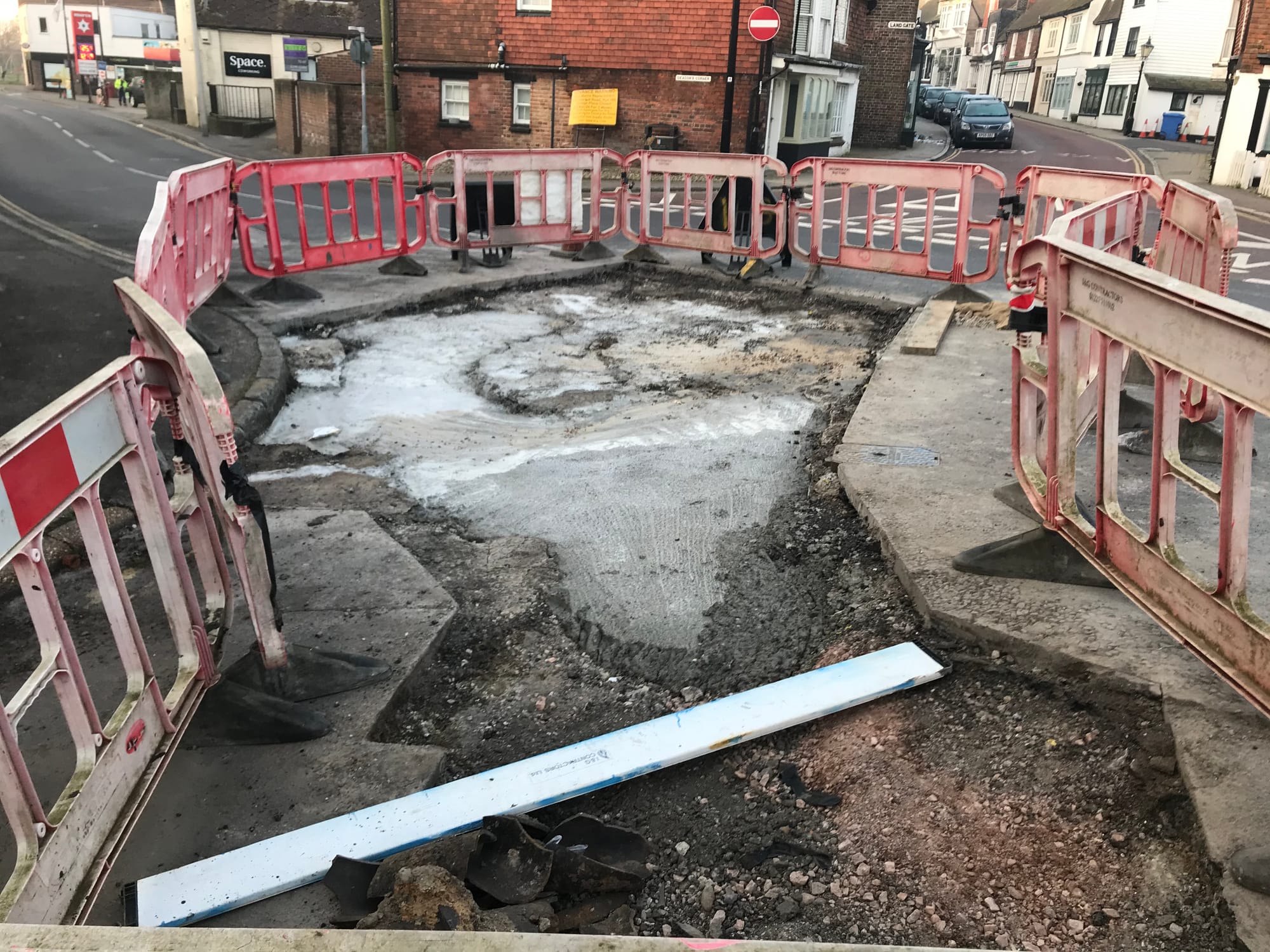The gas contractors have nearly finished their work at Bridge Place (see main photo at top taken mid-week) by Rye's railway bridge and all the excavations have been filled in.