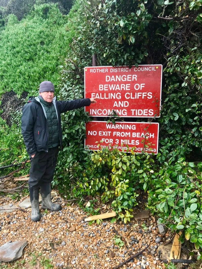 Apart from the danger to sea life, the volunteers were witness to the danger of walking too close to the cliff, on this part of the beach at least. A storey-high section of the overhanging Cliff End Beach at Pett level suddenly collapsed and several tons of rock fell near them. Friend Sandy Spencer told me that Kent Taylor who was walking the beach at the time of collapse and has lived in Pett for 45 years has said that he frequently has to warn visitors to stay away from the base of the cliff because of rockfalls from the top.