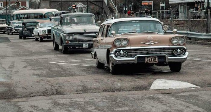 After a drive round the town, creating a traffic jam of a very different sort to those we are used to, and with one or two of the large American cars (of which there were many) appearing to be almost too wide to squeeze down our narrow streets, they gathered in – and filled – the station car park where those of us old enough (just) to remember the days when these cars would have been new, were able to wander round and indulge in a little nostalgia for those innocent far-off times.