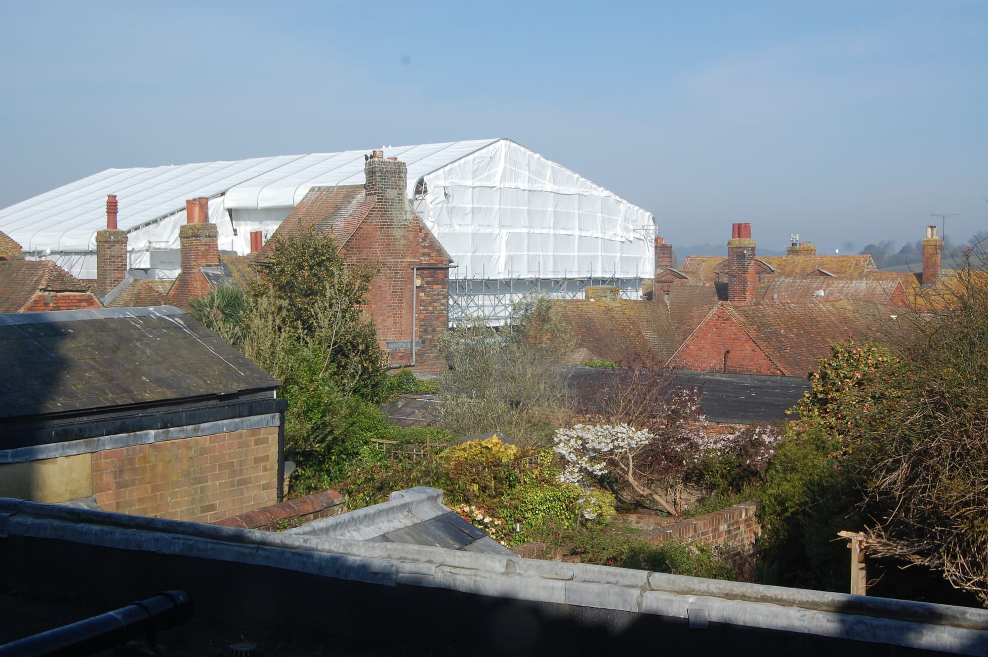 Jane writes: "From left to right you can just see the Landgate and St Mary's, obscured a bit by The George Hotel's covering, and in front is the school and an empty car park" but what she doesn't mention is the magnificent wisteria on the left of the photo. Green fingers anyone!