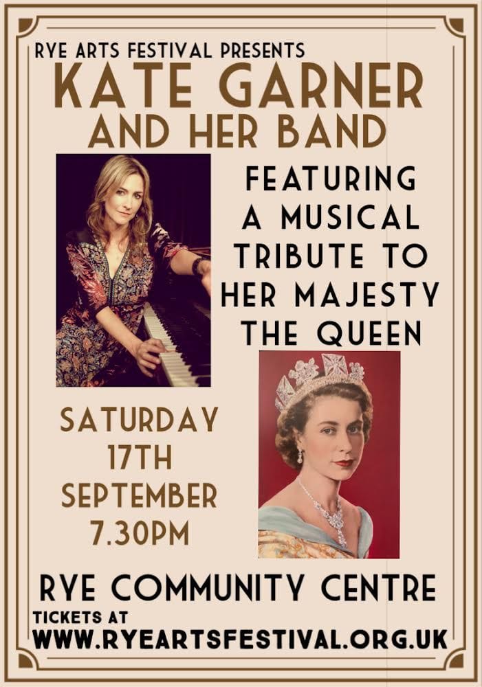 Kate Garner and her band will be playing Rye Arts Festival on Saturday, September 17 and offering a special tribute to Her Majesty the Queen.