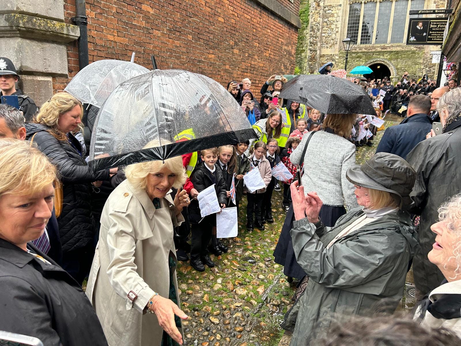 Earlier in the day, Tony Ham captured these shots of the Queen on her way into St Mary's as she talked to local children from Rye Primary School.