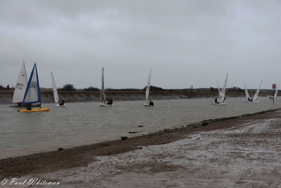 The start saw the dinghies shoot off towards Rye Bay where they would turn before sailing back to Rock Channel and coming back down the river before finishing at the clubhouse. The course would take about an hour to complete and was made yet more difficult by contending with a southerly wind which meant that dinghies had to tack (zig-zag) back downriver. The cold meant that it became difficult to feel tillers and sheets (ropes that control the sails) and mistakes were made, the worst of which would end up in a capsize (with one competitor capsizing as he crossed the finish line).