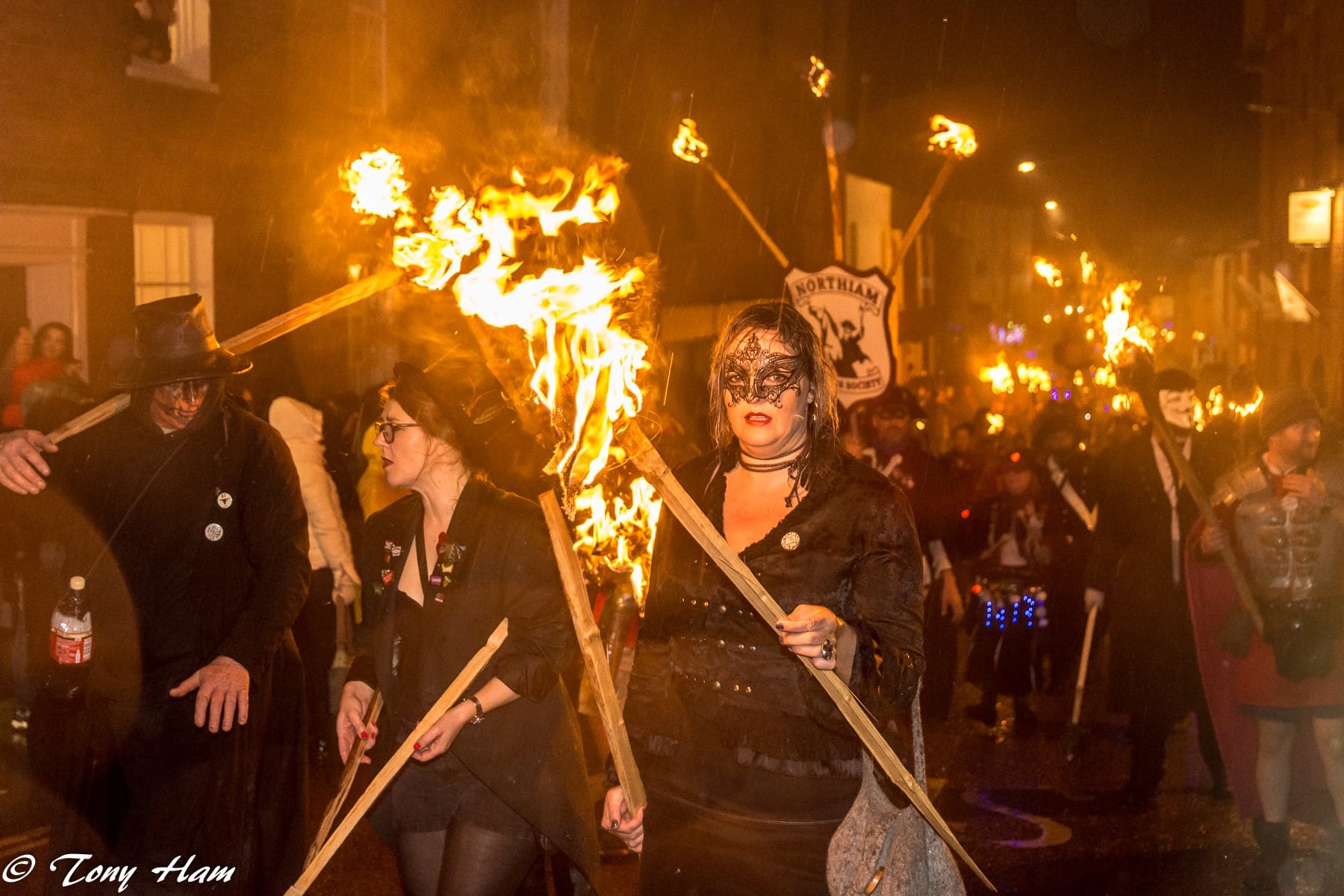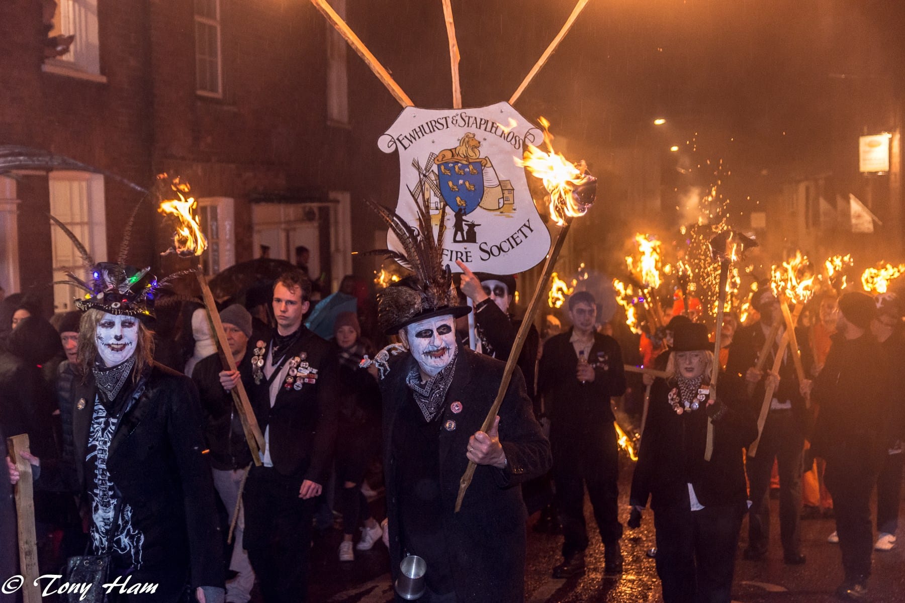 The drums and flaming torches always make this a dramatic sight with painted faces - sometimes a little macabre - and many societies opting for 18th century dress, adding to the effect.