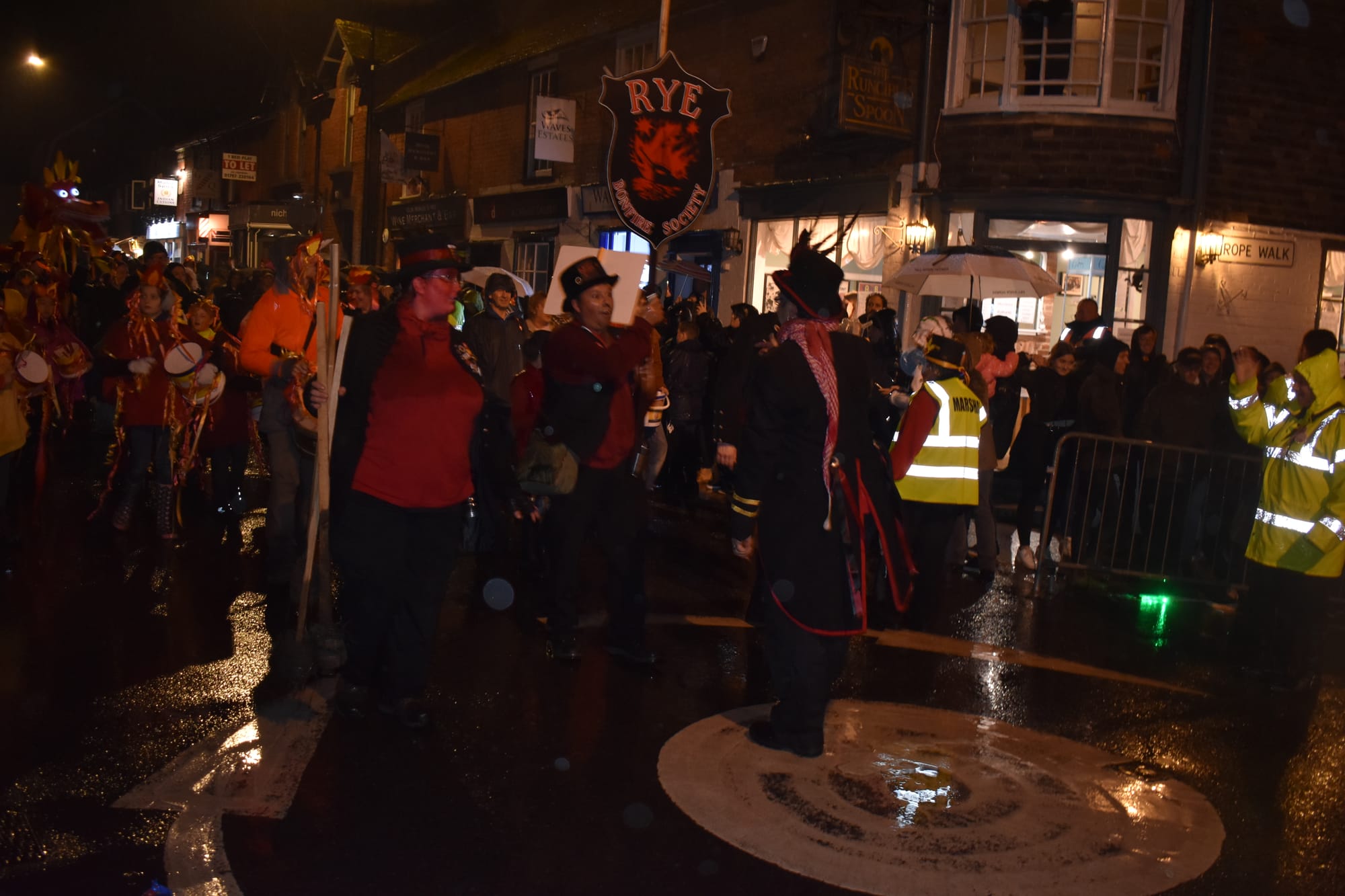 Many thanks to all members and visiting societies who made Rye Bonfire Pageant 2018 such a success; despite the biblical rain, Patsy’s gang of valiant collectors raised over £3,000 towards next year’s event and local community groups!