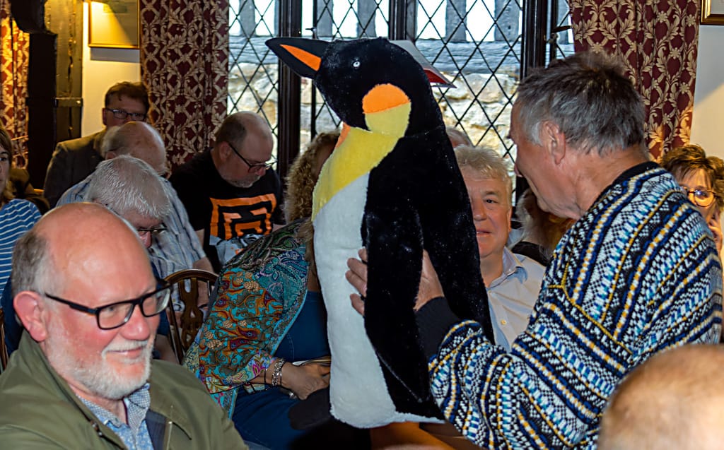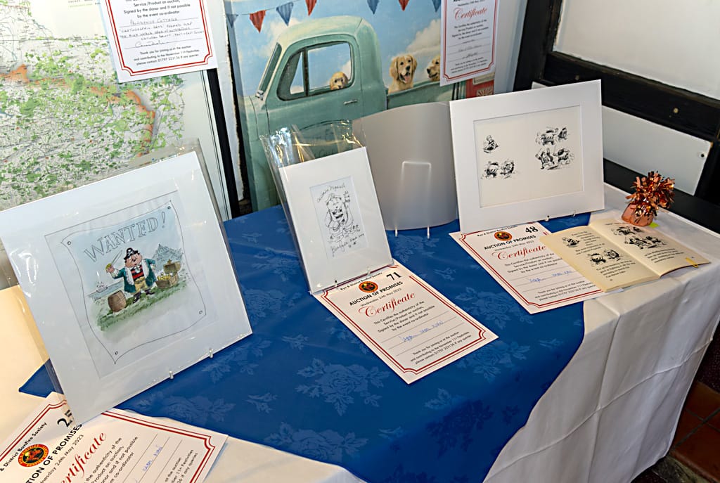 A special thanks to Isabel Ryan who donated original John Ryan ‘Captain Pugwash’ artwork raising £1,500, Willie Wicken for successfully bidding for Rye Fawkes 2023, Pedro the Penguin who made £35 and the ‘lucky’ passer by who popped his head too close to the window to be caught by Kevin’s eagle eye and won!