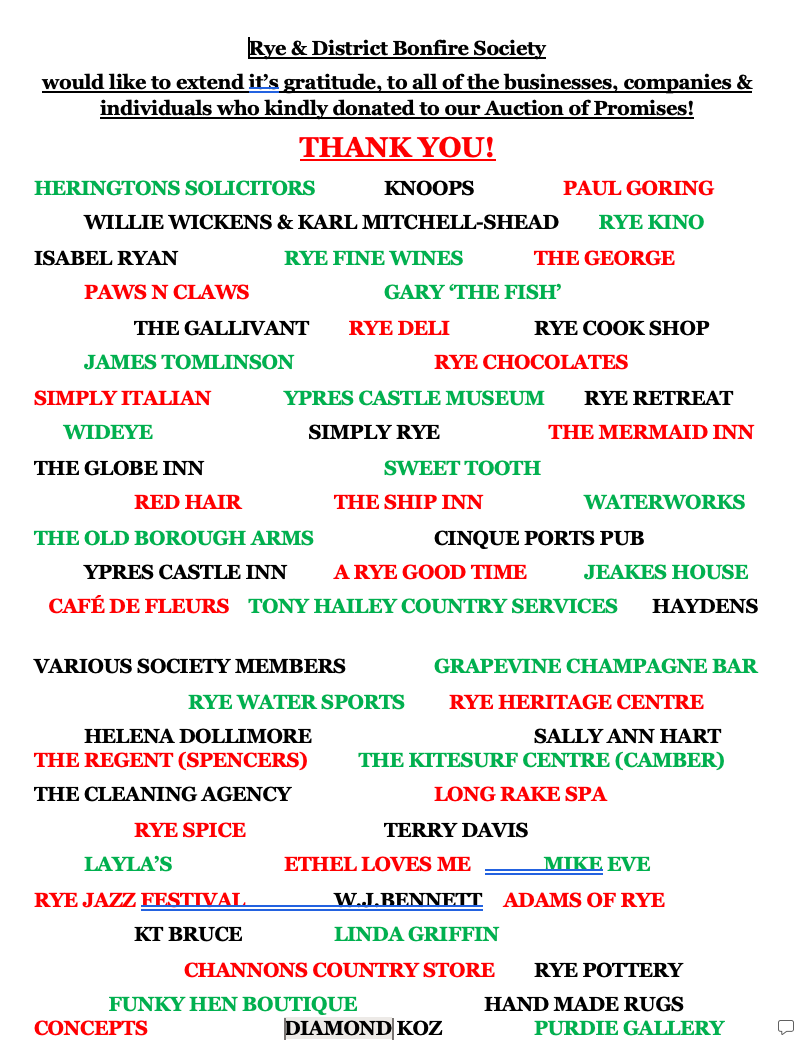 And, to all those who attended and gave so generously to raise an outstanding £9,509 to help keeping Rye Bonfire alive and burning!