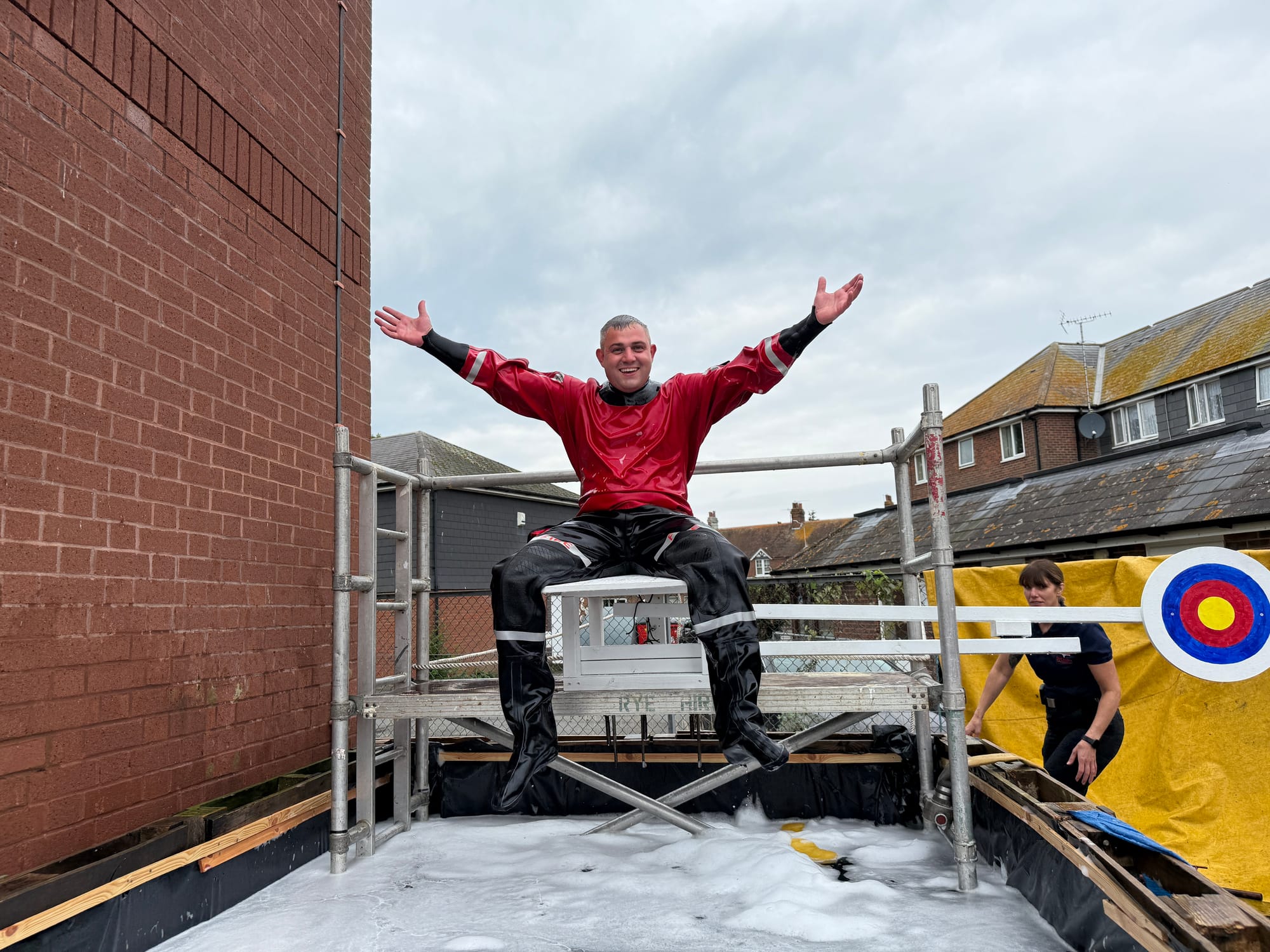 There were many demonstrations, as seen in the video, but the most popular attraction was the dunking of the fire-fighter into a deep pool of water. The most fun was had by the children who dunked their own dad into the pool by hitting a target with a wet sponge.