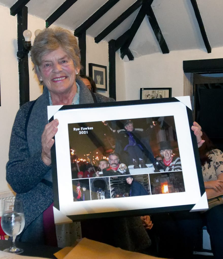 Last week, Hannah Moon from Rye Bonfire Society presented last year's Rye Fawkes, Chris Emson, with a framed picture commemorating her memorable night.