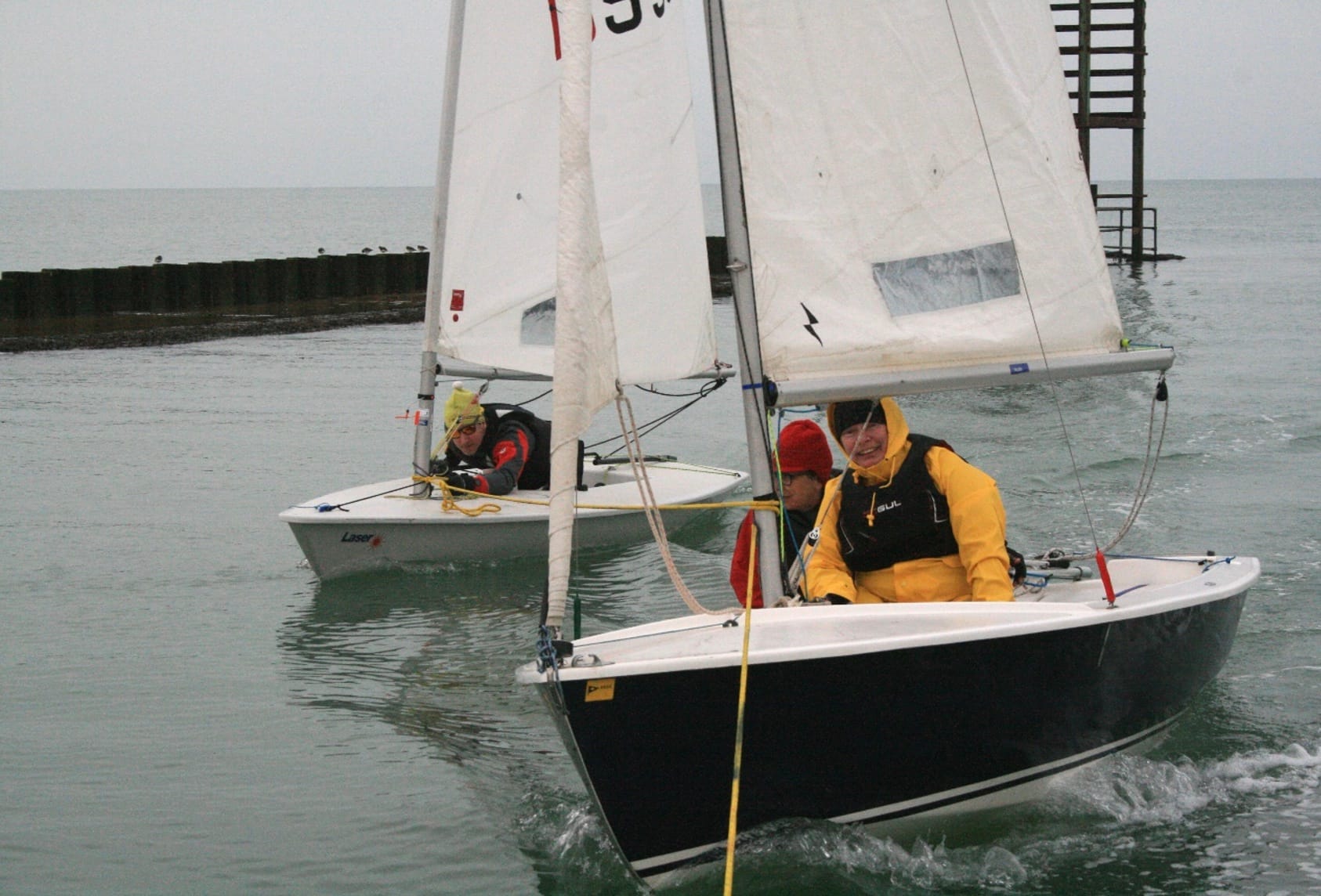 No sooner had that series finished than the Winter Series commenced in November, sailing in Rye Bay. Perhaps we should have taken the Heavy Weather Bowl hint; it was quite a lumpy day, and only two dinghies, sailed by Jeremy and Alison Short and John and Claire Powell, finished the course.