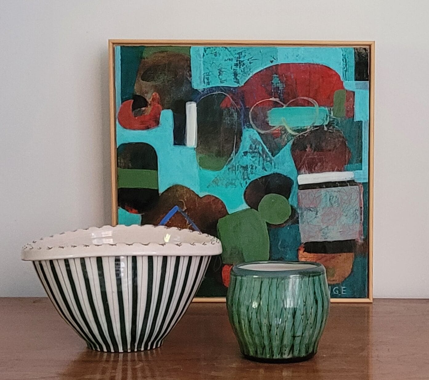 I first went to work with him and David Smeed in 1967 in the little workshop at the top of Conduit Hill which had just been vacated by Ray Everitt (potter) to teach pottery at Sussex University. I had studied as an illustrator and developed drawing and painting skills at Hastings School of Art but I had no knowledge of glazing and decorating pottery. Dennis took time to teach me everything about the art. Dennis was a strict taskmaster but a brilliant and patient teacher. We, David and myself, knew what sort of day we were in for when Dennis came through the door. If he was whistling through his teeth we were in for a prickly time. If, however, he came through the door imitating a trombone we were in for a good day! Dennis learned to play the trombone as a young man. He was the only one in the potteries of Rye who taught me how to mix the glaze and all the glazing techniques, dipping, pouring, spraying etc. Having learned this, glazing and decoration became my forte for many years. I developed many designs that were painted by myself and others onto vases, plaques, plates, tea and coffee sets. I went on to work with Rye Pottery, Rye Tiles, Cinque Ports Pottery and David Sharp.